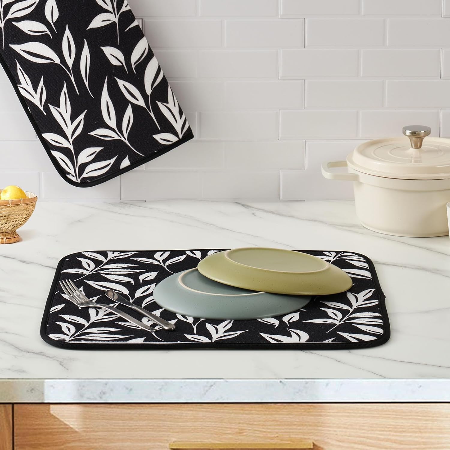 FRESHMINT Printed Dish Drying Mats for Kitchen Counter 2 Pack Absorbent Reversible Drying Mats Microfiber Kitchen Countertop Protector Dishes Drying Pad Extra Large 18"x16" Dish Mat