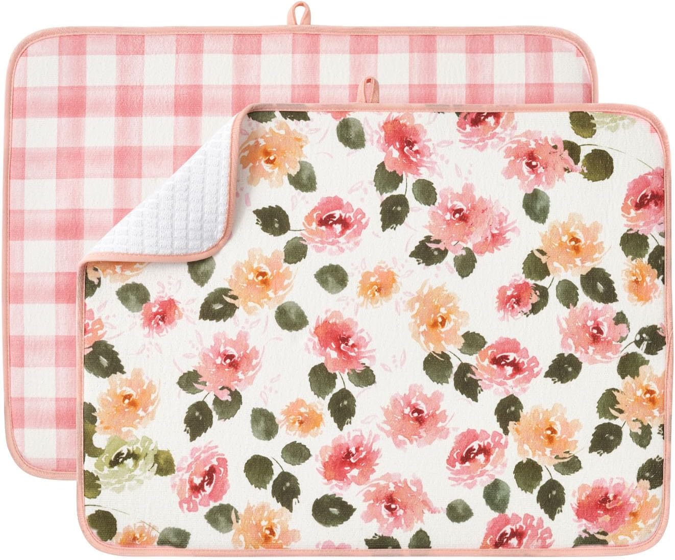 FRESHMINT Printed Dish Drying Mats for Kitchen Counter 2 Pack Absorbent Reversible Drying Mats Microfiber Kitchen Countertop Protector Dishes Drying Pad Extra Large 18"x24" Dish Mat