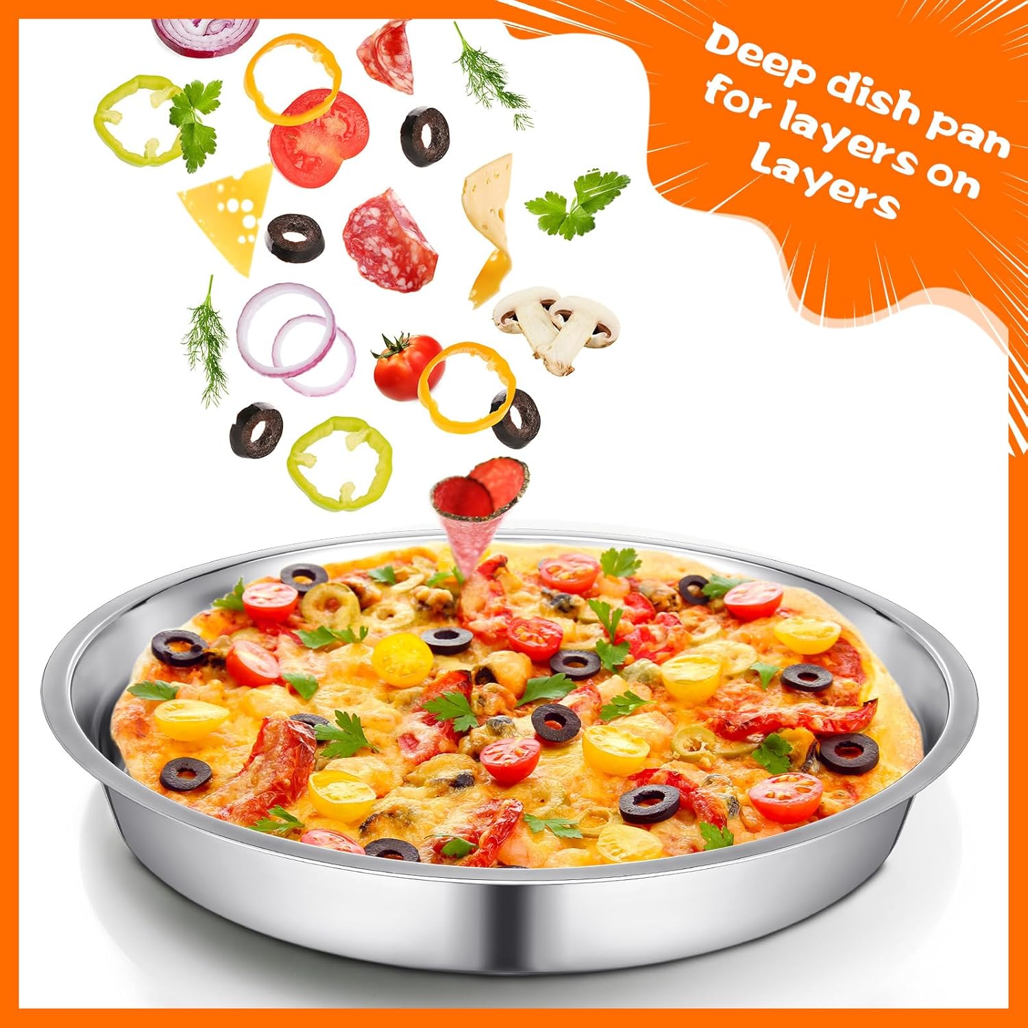 Nuogo 2 Pcs 16 Inch Large Deep Pizza Pans Stainless Steel Pizza Tray Round Oven Tray Rust Proof Reusable Bakeware Cooking Pan Dishwasher Safe for Baking, Serving, and Displaying Cookie Pie