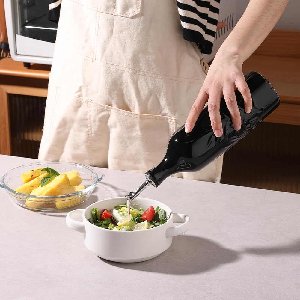 Sweejar Large Ceramic Olive Oil Dispenser Bottle, 24 Oz Relief Opaque Oil Cruet Protects Oil To Reduce Oxidation, Storage Vinegar, Soy Sauce, Coffee Syrup, Liquids, Set of 1 (Black)