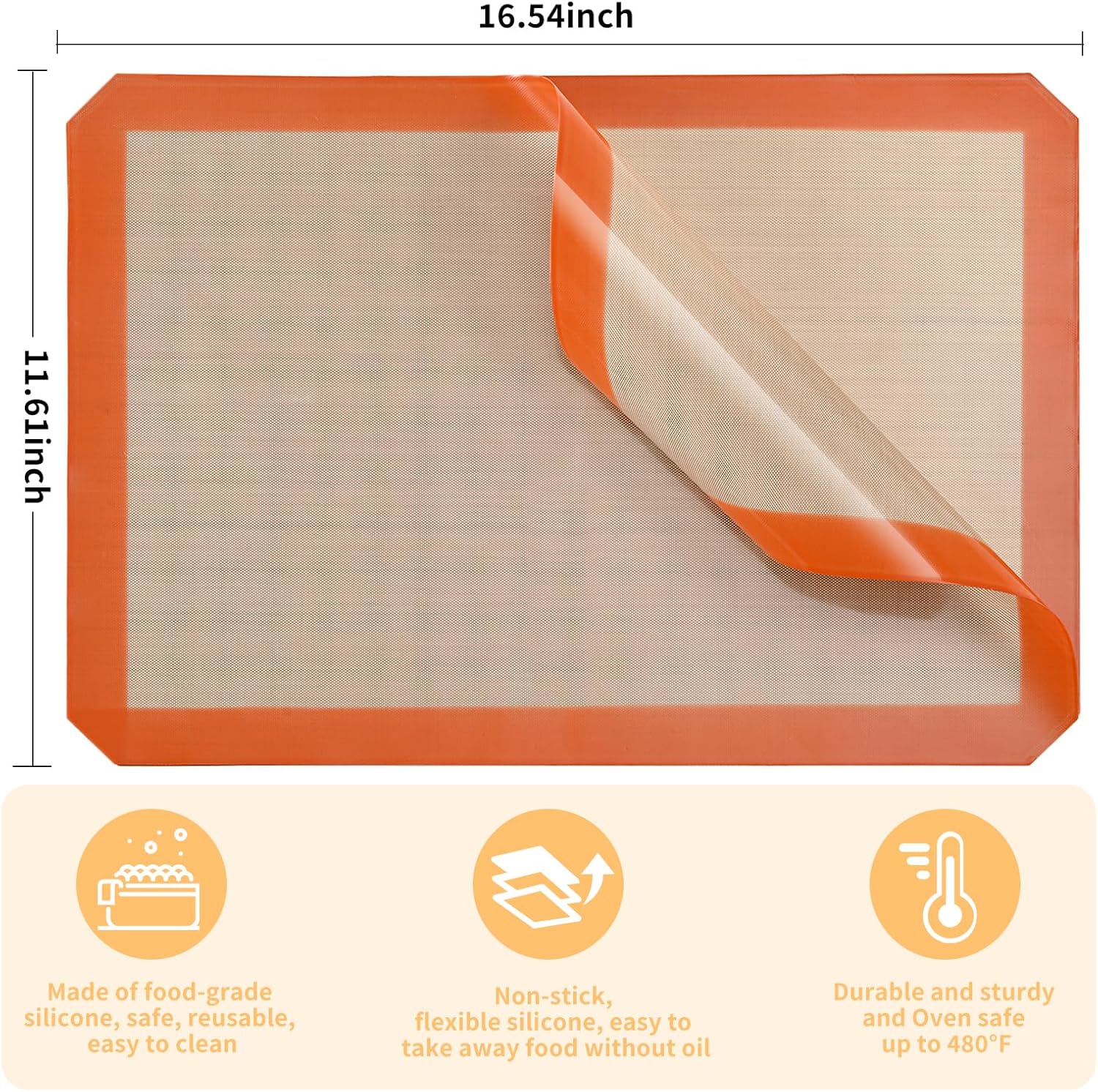 - Perfect Fit for Half Sheet Pans: Sized at 16.54" x 11.62", these reusable silicone baking mats fit all standard half sheet trays. Ideal for baking cookies, bread, pastries, or roasting vegetables — no parchment paper or foil needed.