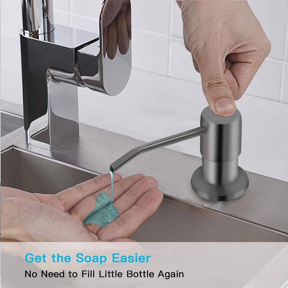 - 【NO MORE MESSY REFILLS】:No more crawling under the sink. Our elegant sink soap dispenser comes with a tube that goes directly into a large dish soap bottle, you can skip the frequent refill process.