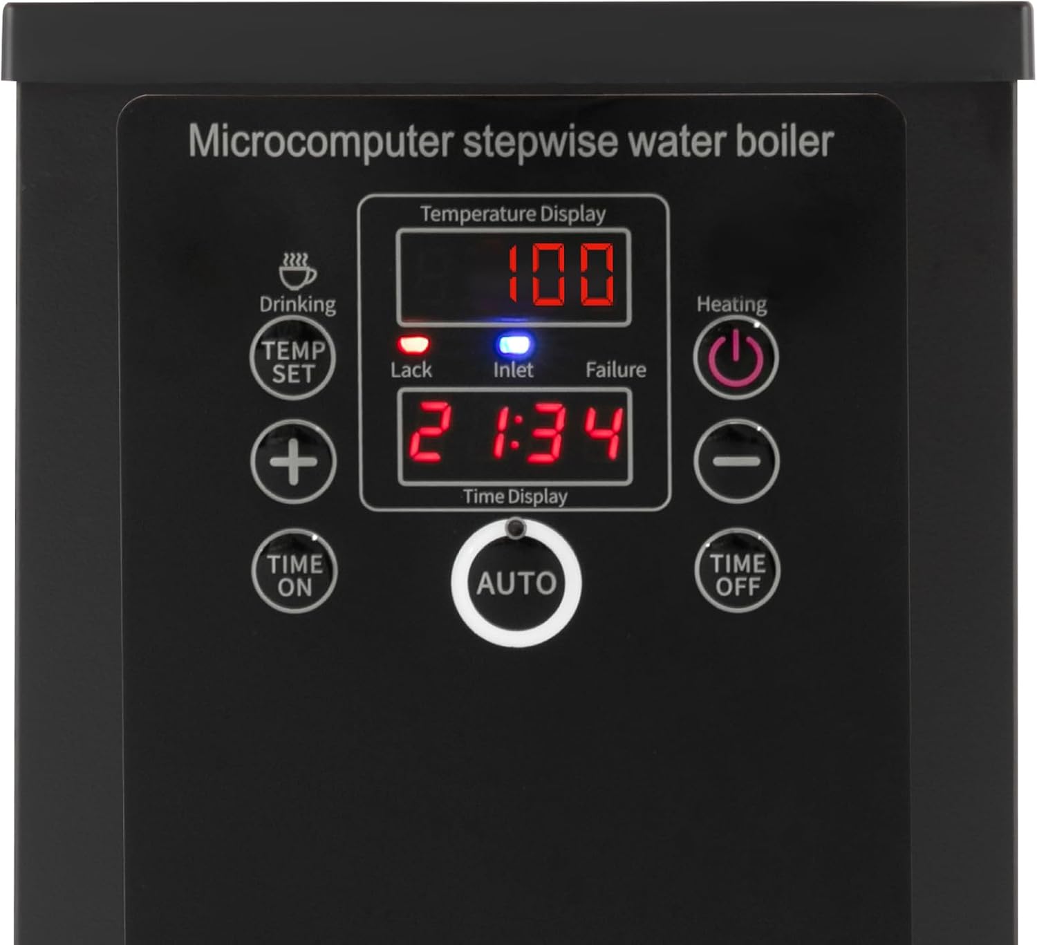 - 【Easy to Use & Good Material】: The smart digital display screen shows you the temperature in real-time and lets you see all the functions at a glance. The sensitive keys allow you to adjust easily. You can also set on and off times for your convenience. This commercial water boiling machine and dispenser mainly uses 304 stainless steel for the material, with high hardness, good performance of corrosion and rust resistance, making you drink it with peace of mind.