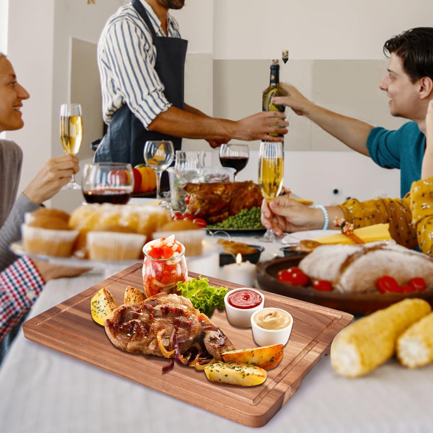 - Kitchen Essential: Gtencemen was designed to be the most functional cutting board you've ever had. This chopping board could be used as cutting, chopping, carving board, cheese board, heavy duty butcher block, serving tray for guests, or a Charcuterie board and decorative piece. There are perfectly routed finger grooves at each end for easy lifting and carrying.