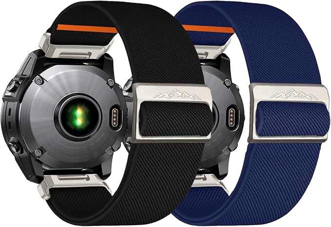 • 【User-Friendly Material】Compatible with Garmin Fenix 6x/Fenix 5x/Fenix 7x bands elastic nylon braided strap is made of high quality stretchy nylon, super soft and lightweight, breathable and comfortable. This eco-friendly nylon and the sweat-absorbing property make this strap super skin-friendly.