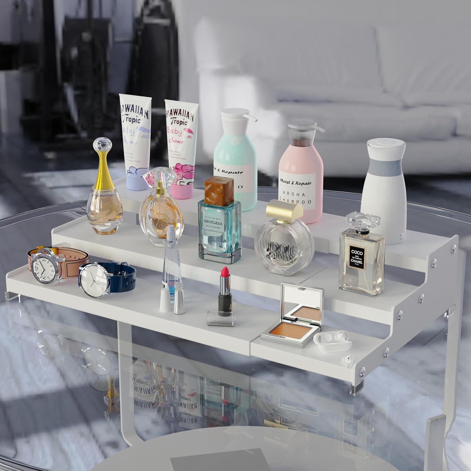 - ⭐[Organize and Save your space]Stepped design to provide you with both space and visibility.you can get what you need quickly and clearly.Create extra space-use it throughout the home; Save for storing and organizing nail polish,perfume, lotions,body sprays,makeup,lipstick and other cosmetics in the bathroom and your other kitchen cabinets.
