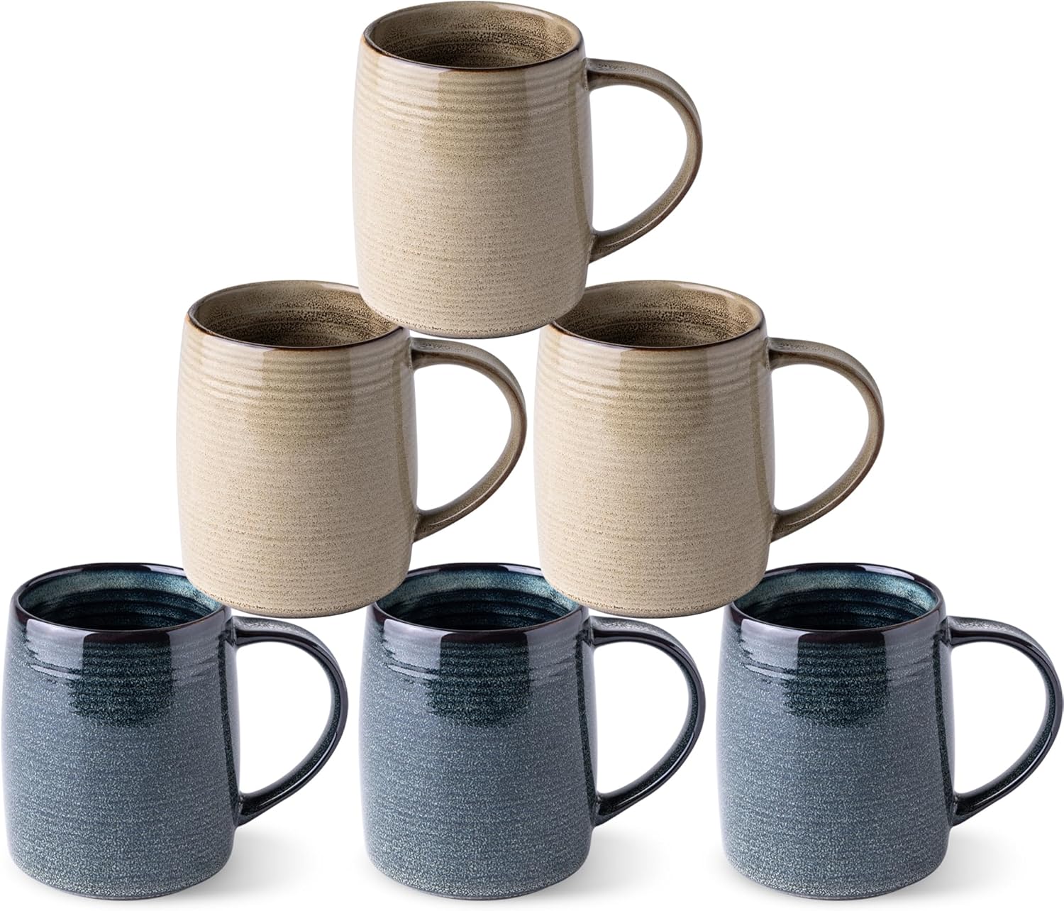 GBHOME Large Ceramic Coffee Mugs Set of 6, 18oz Handmade Stoneware Coffee Mugs Set for Latte/Cappuccino/Hot Cocoa, Dishwasher & Microwave Safe, Multi-Color