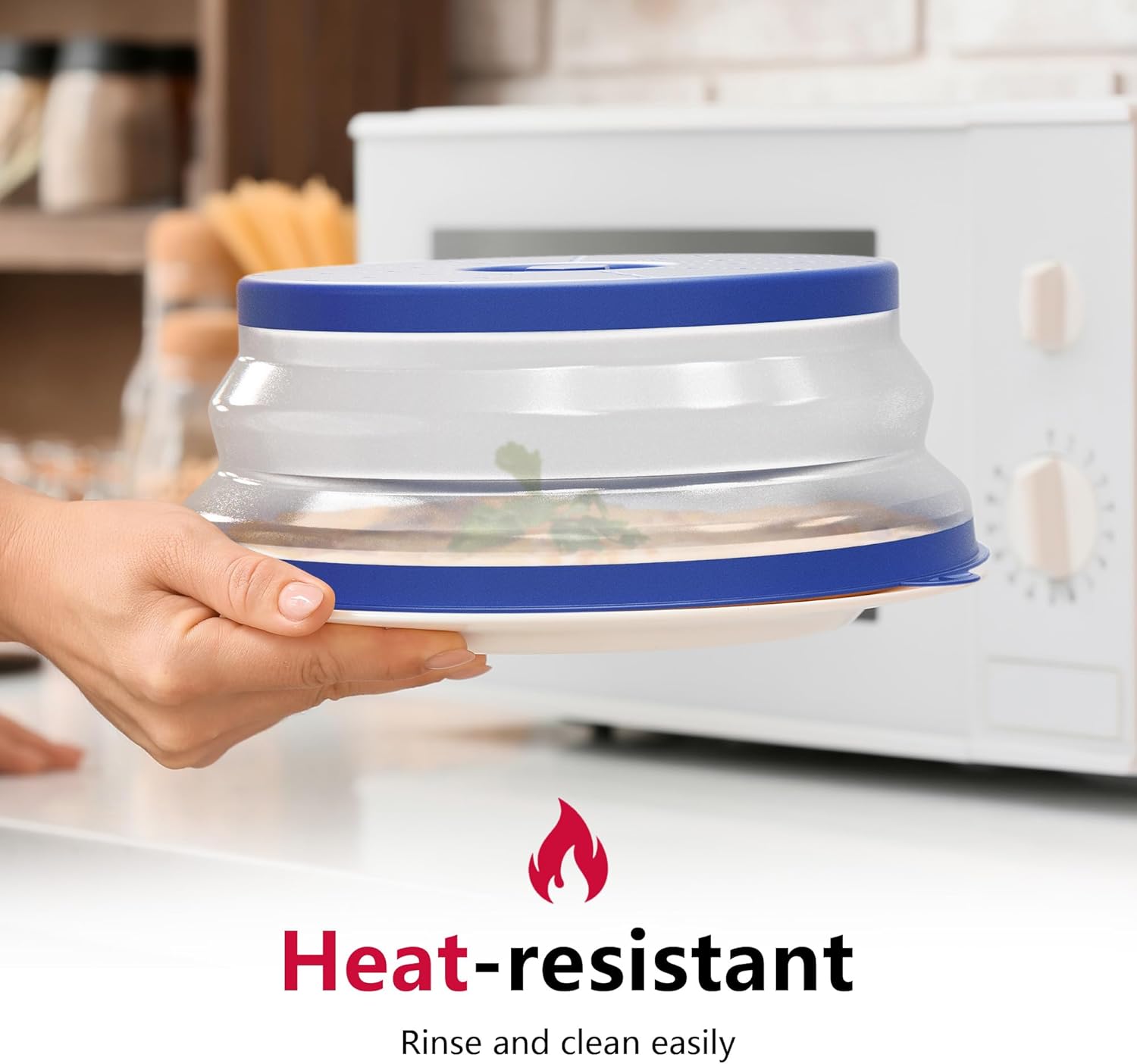 - Easy to Store: The foldable microwave splatter cover pops up to 3.2 inches to cover tall plates, food stacks, and shallow bowls. It also folds down to 0.72 inches when not in use. And features a hook hole for easy storage, saving you more space.