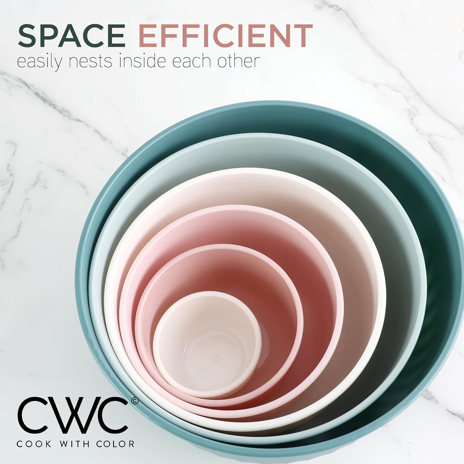- Cook with Color 12 piece plastic mixing bowl set - non slip bowls with lids; easy to clean, sturdy mixing bowls.