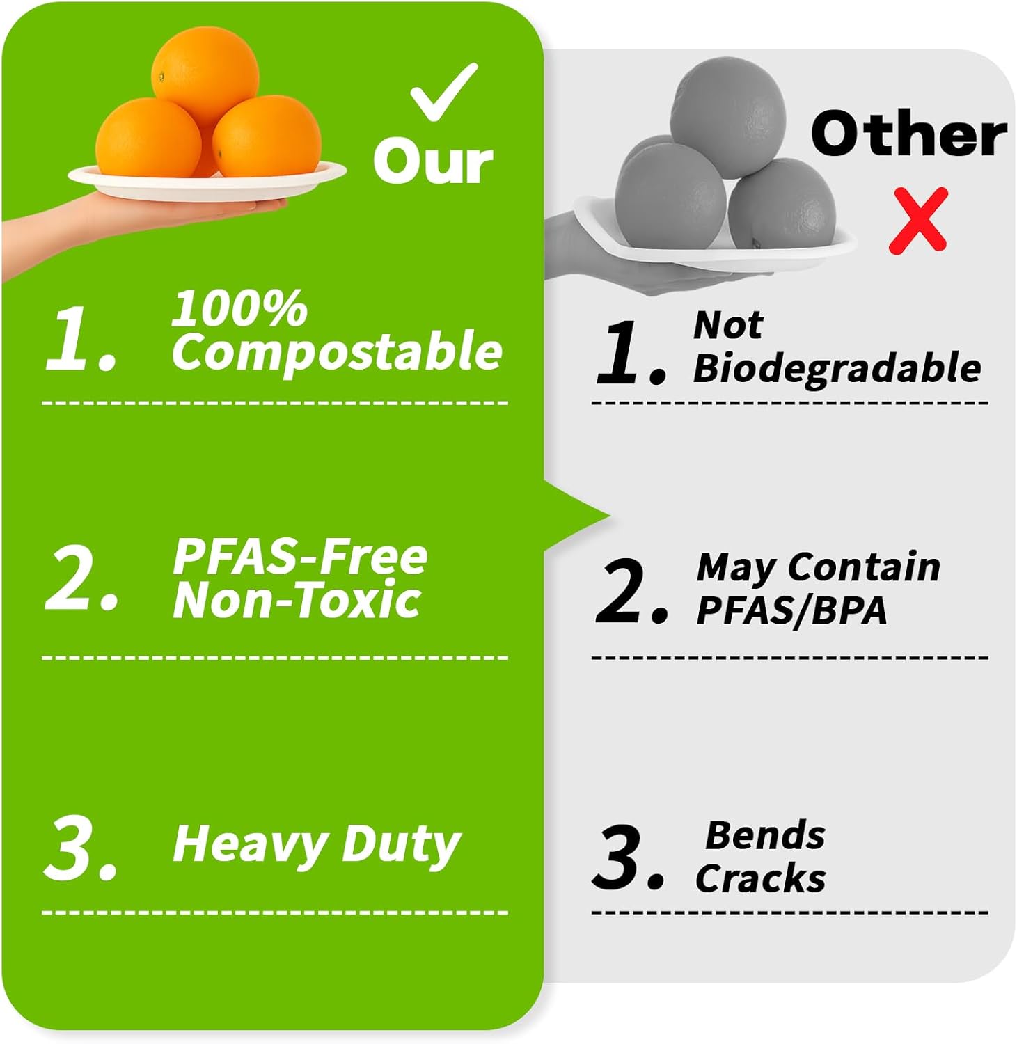 - 2️⃣✅ 100% Compostable & Eco-Friendly Made from 100% sugarcane bagasse, these compostable paper plates are fully biodegradable – a safe, eco-friendly alternative to plastic or foam dinnerware.