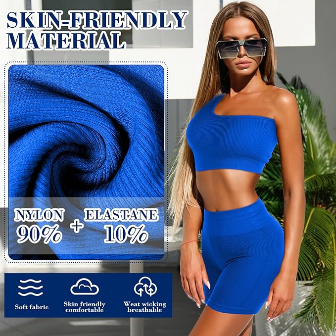 • Pilates Outfit Set: women 4 piece workout sets include 1pcs scoop neck sports bra, 1pcs one shoulder sport top, 1pcs ribbed shorts and 1pcs women leggings, stylish and practical garments designed to bring comfort and functionality to your workouts