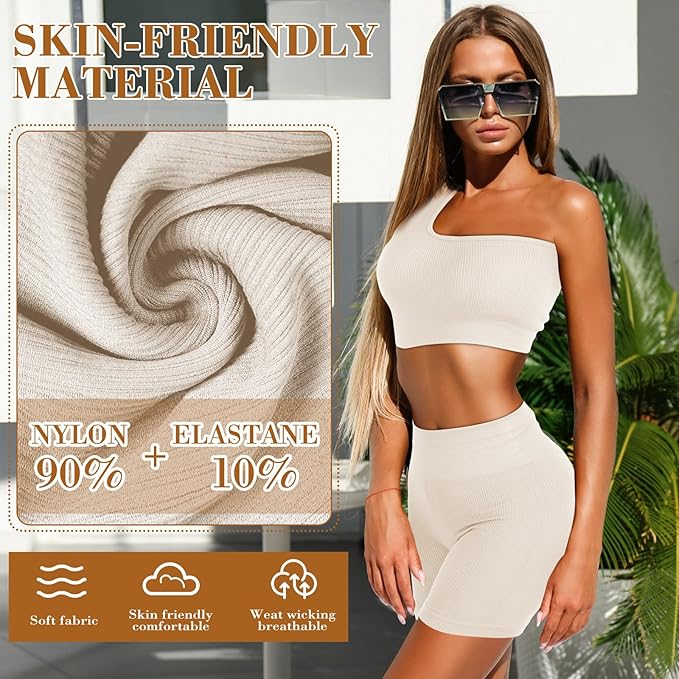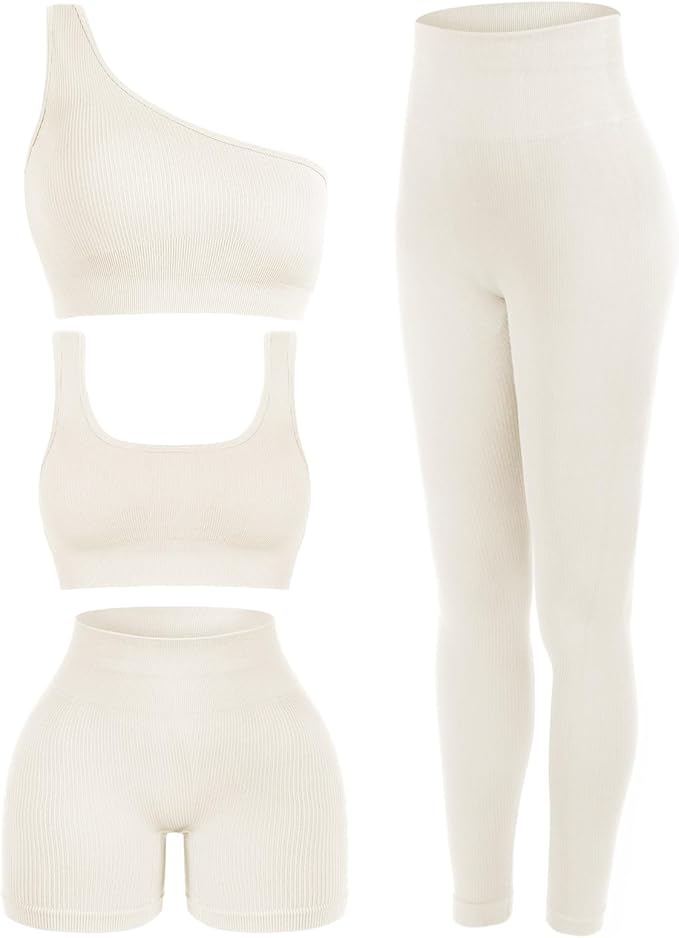 • Pilates Outfit Set: women 4 piece workout sets include 1pcs scoop neck sports bra, 1pcs one shoulder sport top, 1pcs ribbed shorts and 1pcs women leggings, stylish and practical garments designed to bring comfort and functionality to your workouts