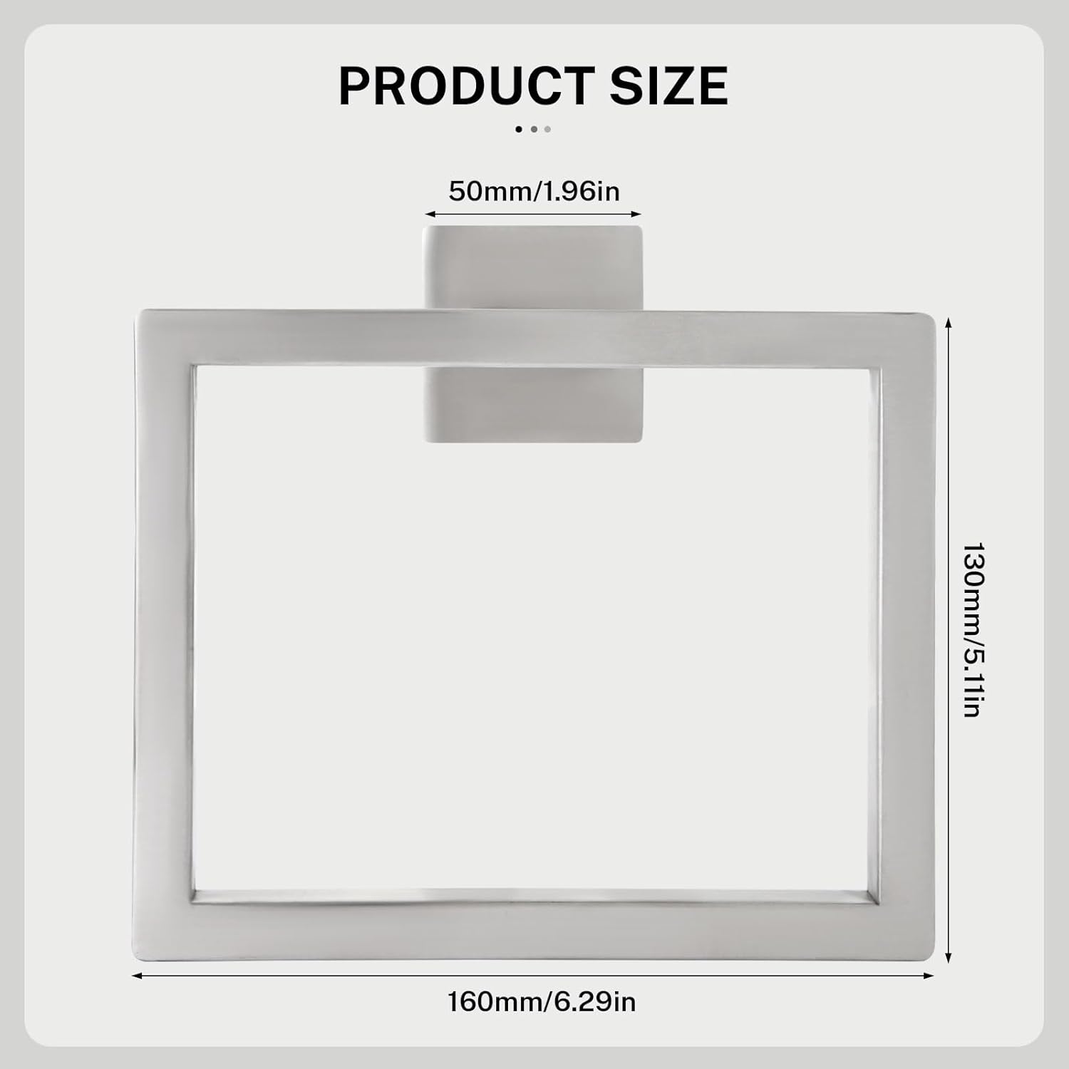 2-Piece Brushed Nickel Square Towel Ring,Modern Hand Towel Holder for Bathroom,SUS304 Stainless Steel Towel Hangers Wall-Mounted