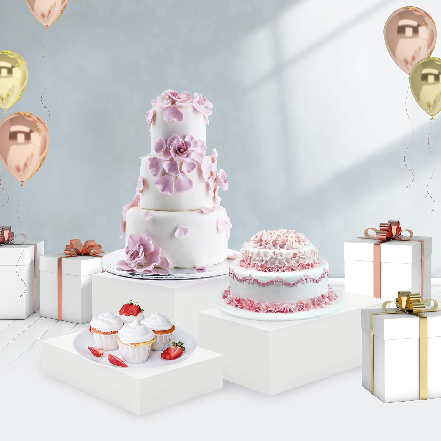 6 Pack White Buffet Food Risers, Step 12” 11”10” Large Size Acrylic Cube Box Display for Dessert Food Drink Collectibles Jewelry Figures, Display Stands for Retail Vendor Events,5 Side, Rectangle