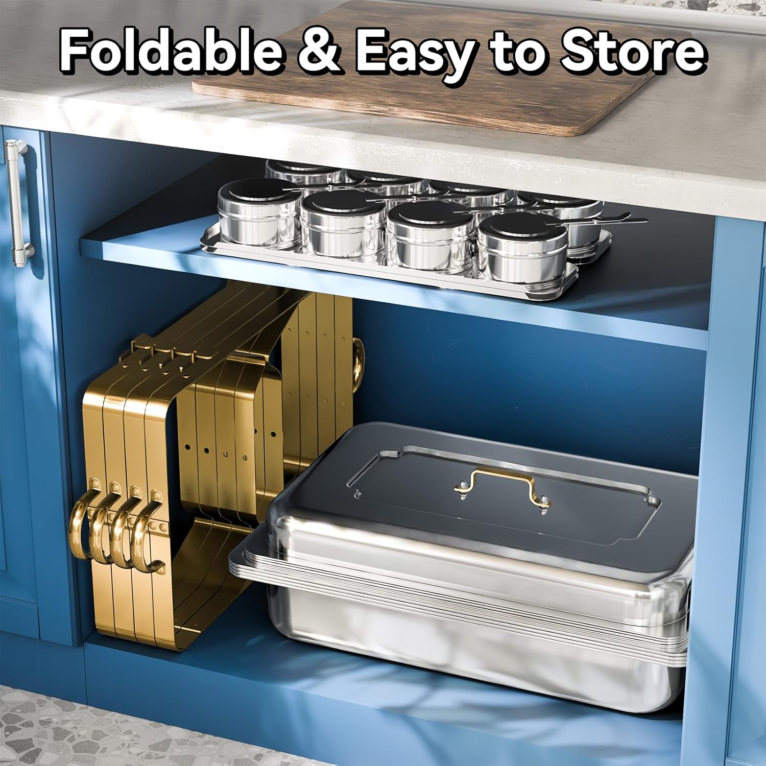 - DAZZLING COLOR DESIGN: The chafing dishes for buffet are meticulously designed with a striking blend of gold and silver colors that adds a touch of elegance and delicacy to your parties, leaving a deep impression on your guests.