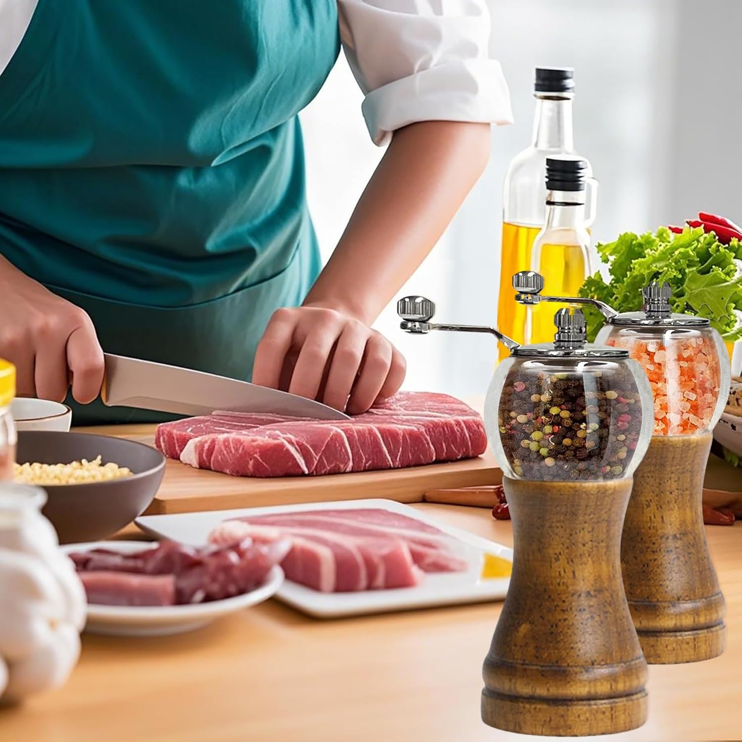 - Classic Design : Pepper grinder set with classic design, acrylic, ceramic grinder core, wooden bottle, make the overall appearance more high-end atmosphere, suitable for any kitchen.