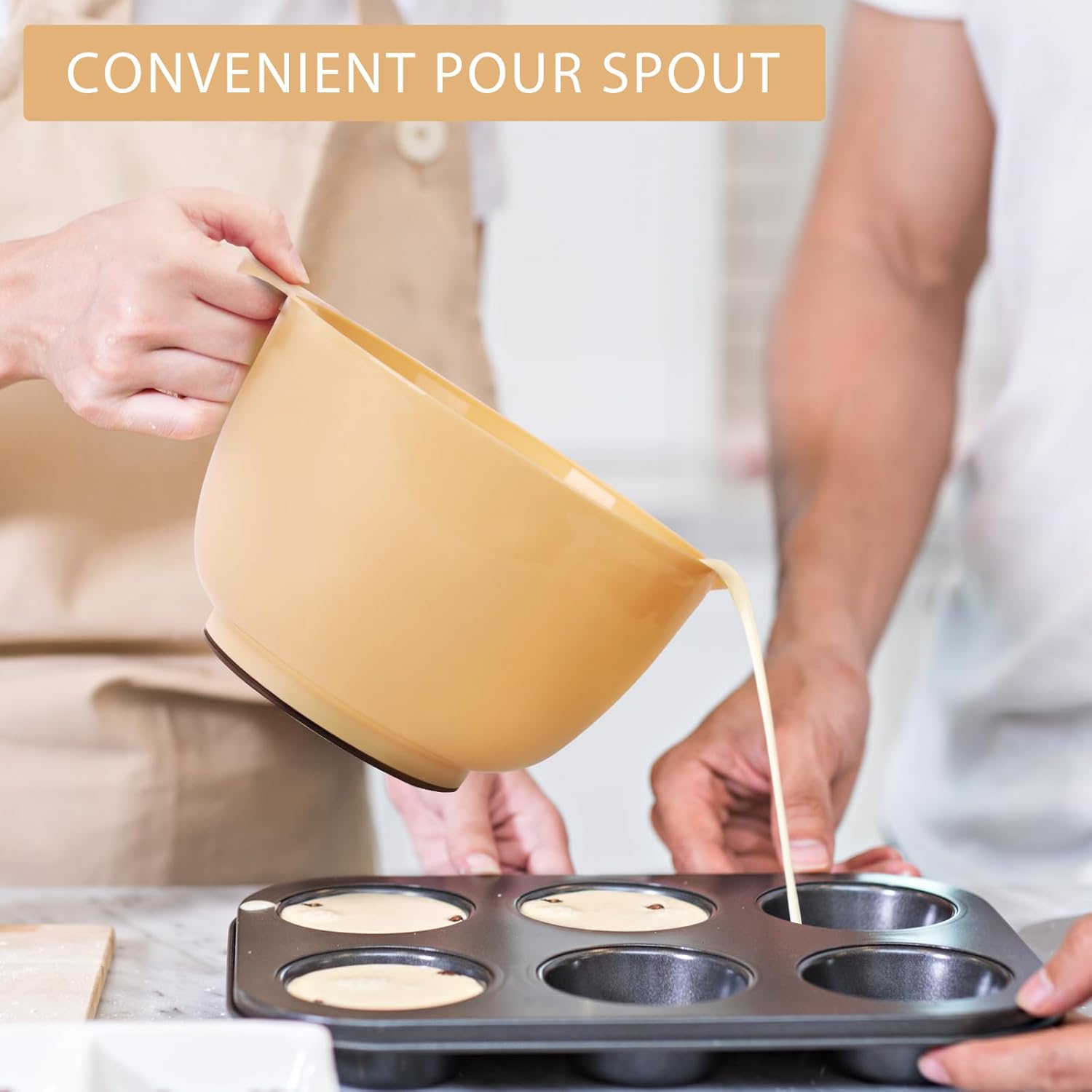 - 【Pour-Spout & Reduce the Mess】Crafted with pour spout and deep bowl design, easy for you to pour and combine liquid like milk or water into the ingredients, keeping you away from the hassles of spatters or spills. So as to make your kitchen countertop clean and tidy with ease. It is perfect for you to make a refreshing salad, prepare food, mix batters or whisk the eggs. With this mixing bowl set, elevate your cooking experience to a whole new level!