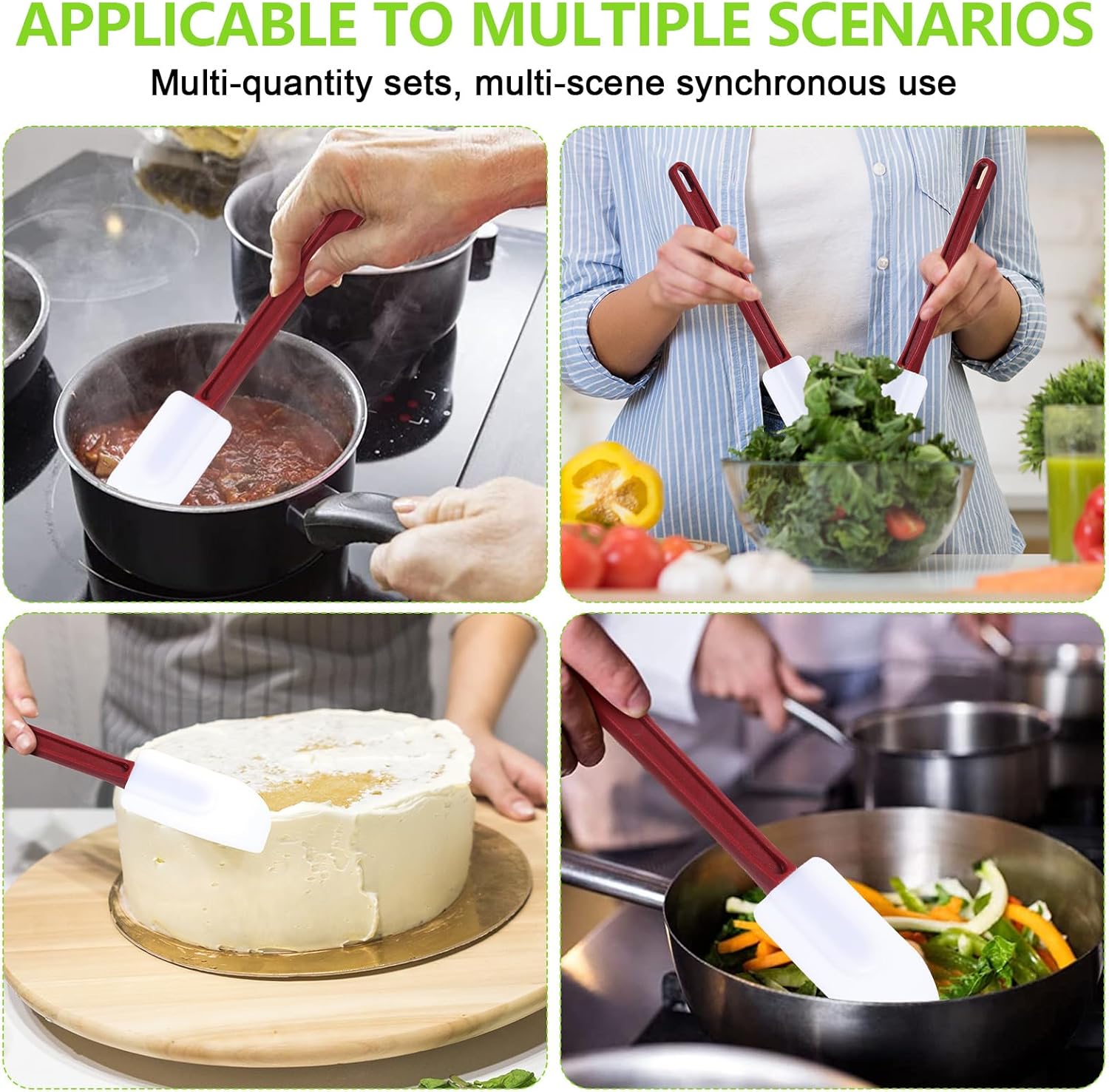 - Heavy Duty and Long Handle: our long handle spatulas are flexible for most heavy duty task, making it easy to mix even the thickest dough and mixtures; The long handle is thick and comfortable to hold, saving you energy in the kitchen