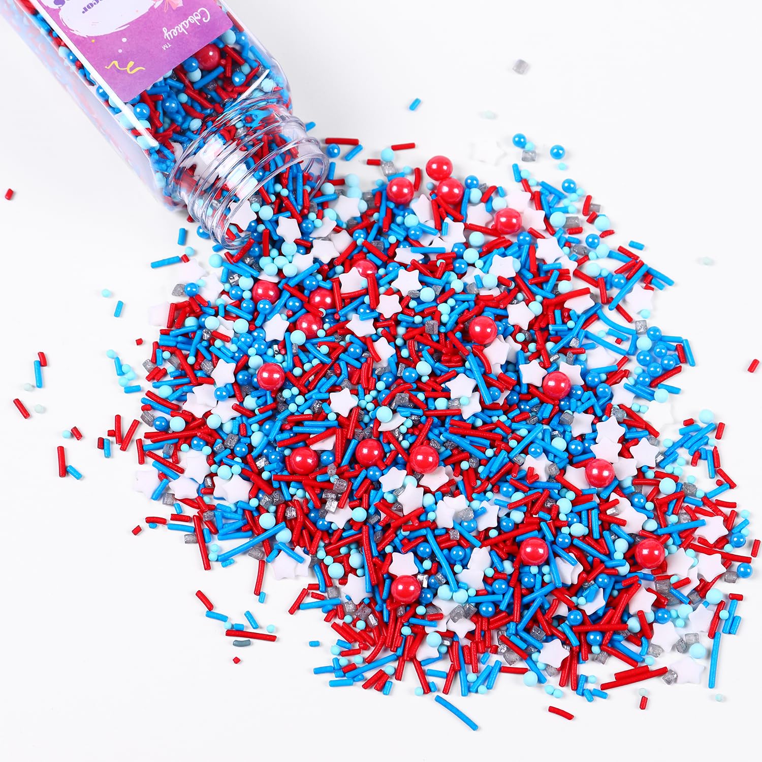 - Red White and Blue Sprinkles for Cupcakes: These pearl sugar sprinkles mixes are classy for Independence Day cakes. And you can also use them to embellish cookies, cupcakes, ice cream, fondant and pastries for added allure. Decorating your favorite baked dessert with our mixing shapes Cake Sprinkles will surely elevate your presentation.