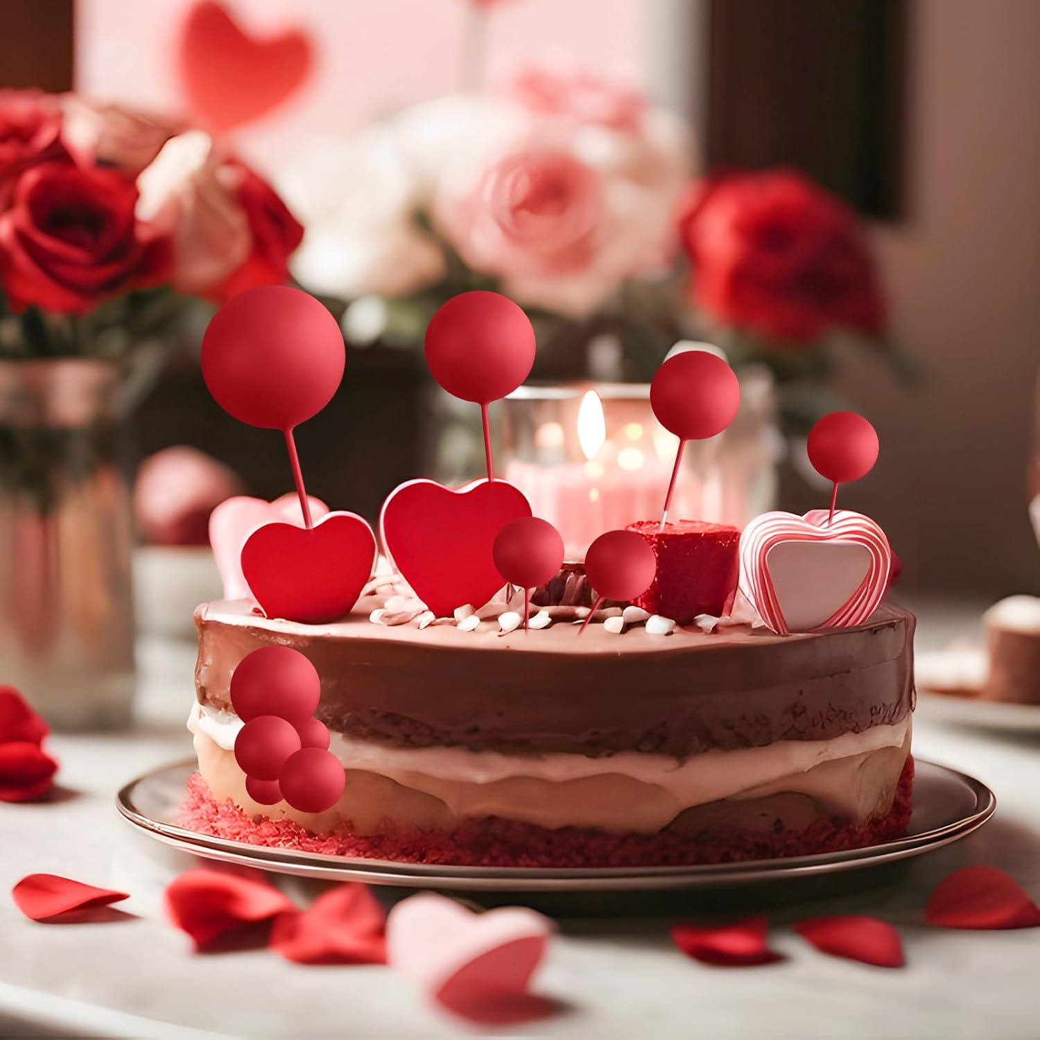 48 Pcs Balls Cake Topper Decorations Balloon Cupcake Toppers Foam Cake Topper Balls Cake Balls Decorations for Birthday Party Wedding Anniversary Cake Decorating (Red)
