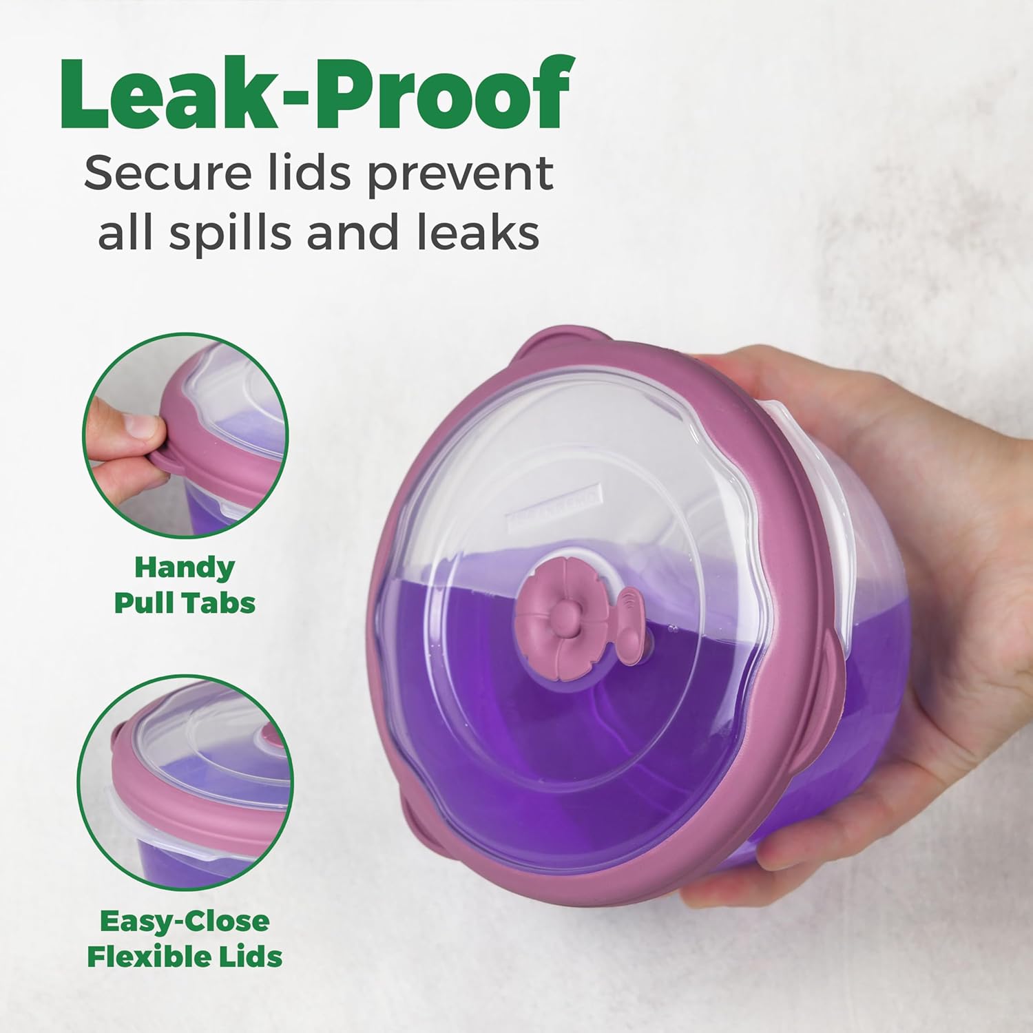 - LEAK-PROOF, EASY OPEN, EASY CLOSE LIDS: Seal in meals, Keep your meals fresh and ready to go with airtight lids, featuring flexible rubber seals and tabbed edges for effortless opening and closing.