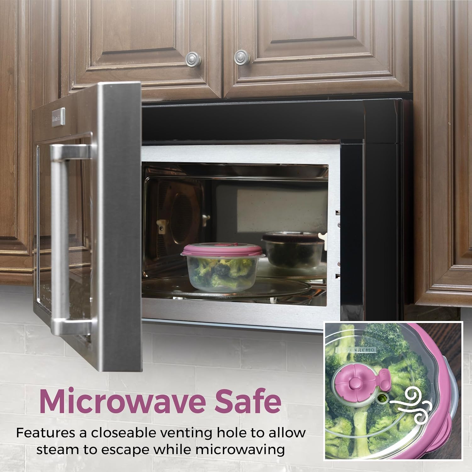 - FOOD STORAGE CONTAINER FOR MICROWAVE - Microwave container equipped with flower-shaped steam vent lids for easy reheating; designed with curved top handles for effortless microwave use.