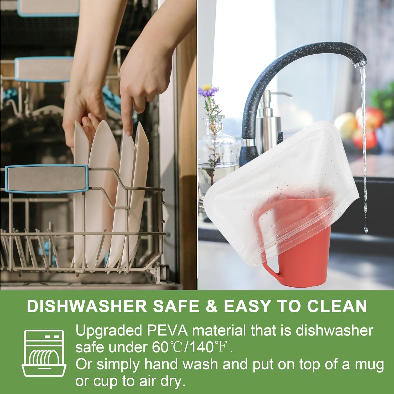 - ✿【Easy to Clean】These food bags are dishwasher-safe (top rack), to extend the life of our reusable bags, we more recommend hand washing, just wipe & rinse clean, and then put the fruit bags upside down on the top of a cup to air dry.