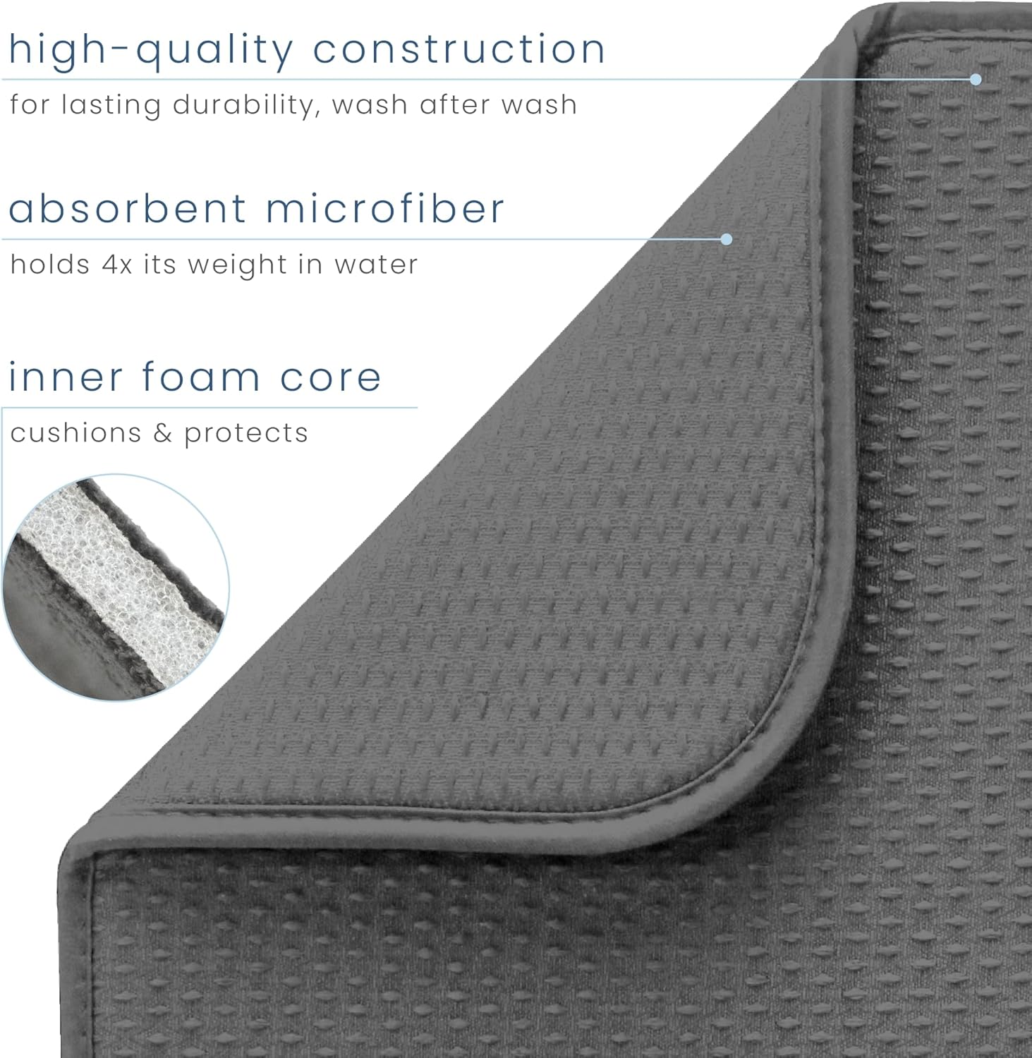 - One Envision Home by S&T INC. Microfiber Dish Dry Mat XL measuring 18 in. x 24 in.; kitchen mat for countertop absorbs up to 4 times its weight in water to keep your countertop dry, unlike a silicone dish drying mat