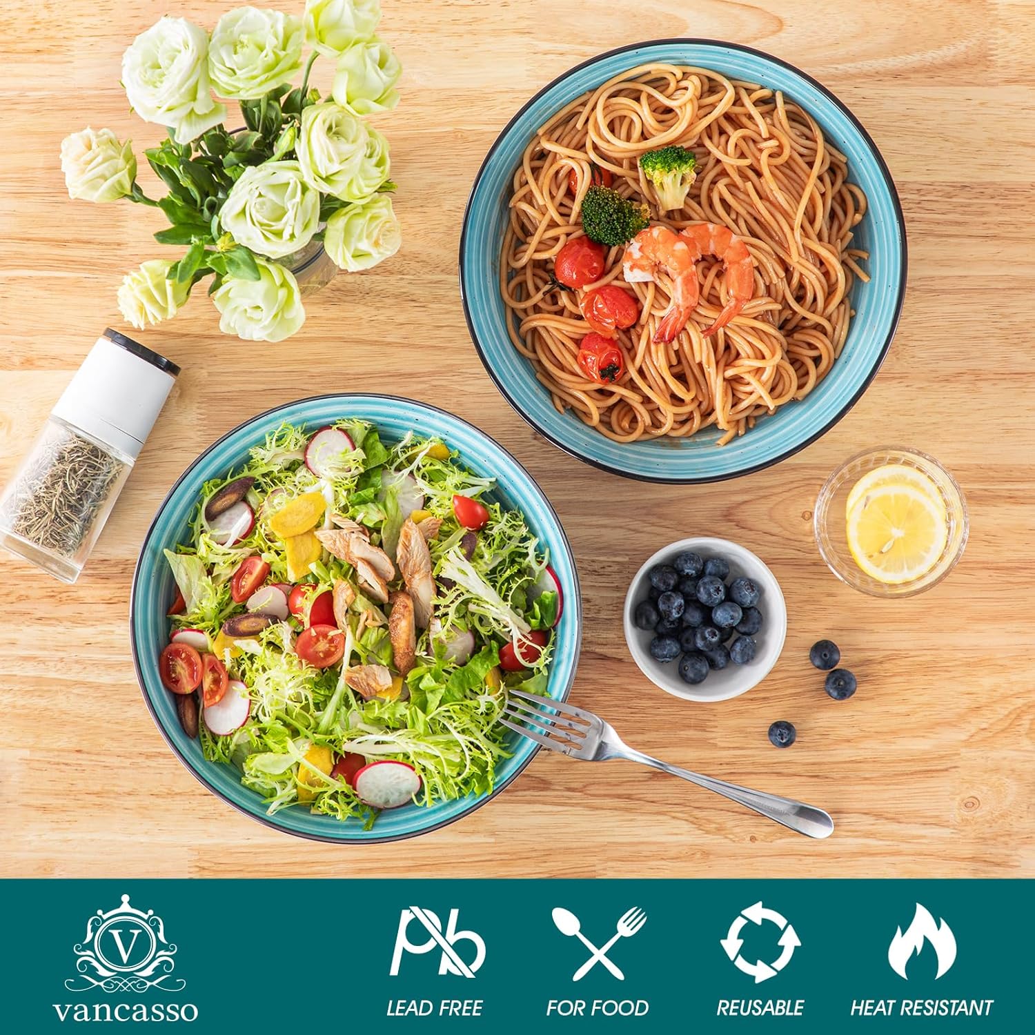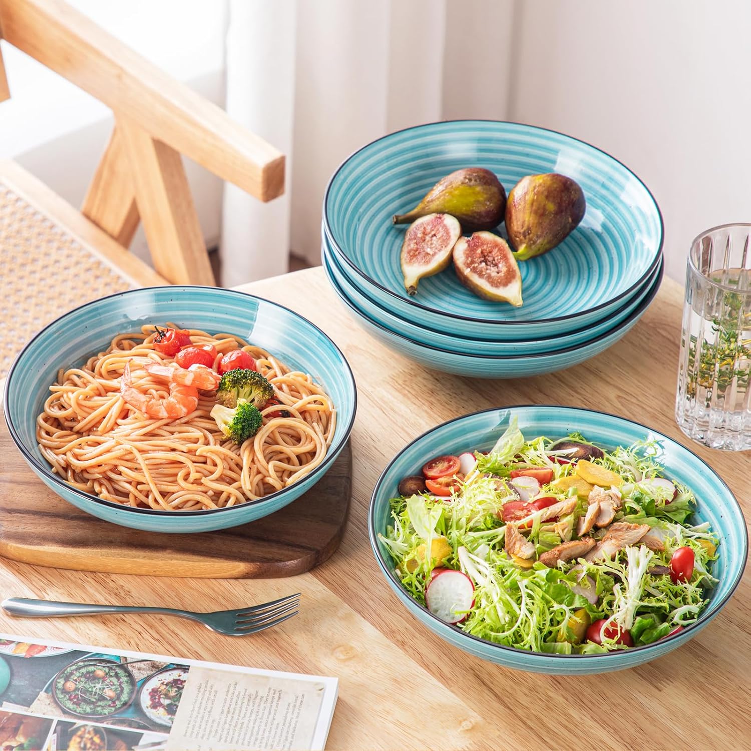 - 【Multifunctional Pasta Bowls】 These shallow bowls set are suitable for soups, cereal, burrito bowls, stir fries, seafood, stews, casseroles, and more. vancasso pasta bowls are suitable for all delicious food