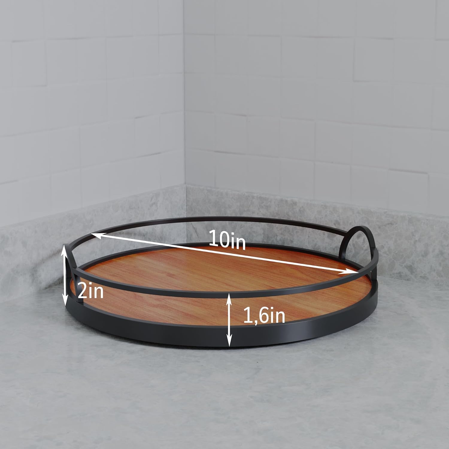 - ✅ ELEGANT & PRACTICAL DESIGN - At 10''× 2'' this decorative lazy susan tray is a small size to be functional for kitchen, living room or bathroom. The arc curve handles and prominent black rails makes the display tray visually appealing and easily to lift.