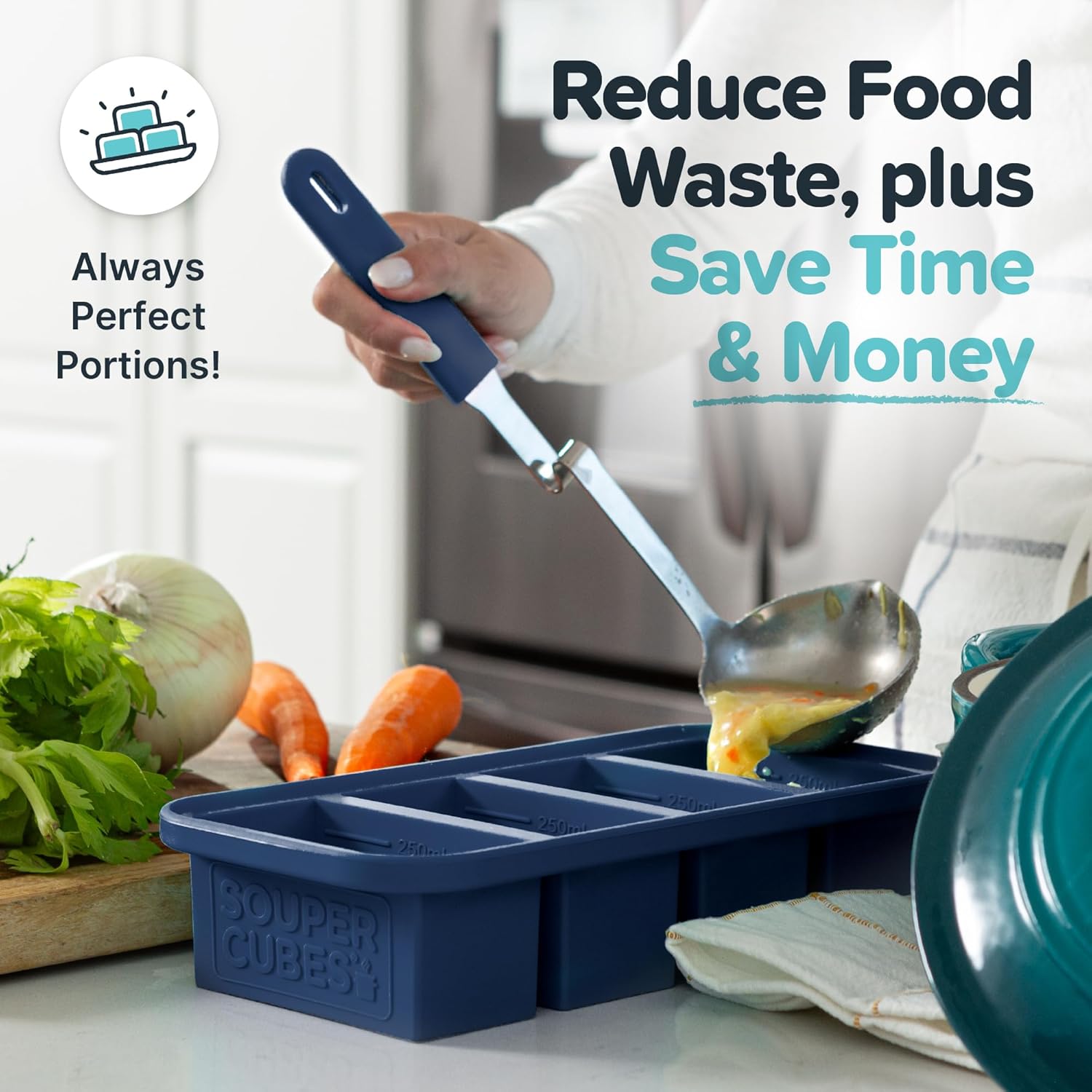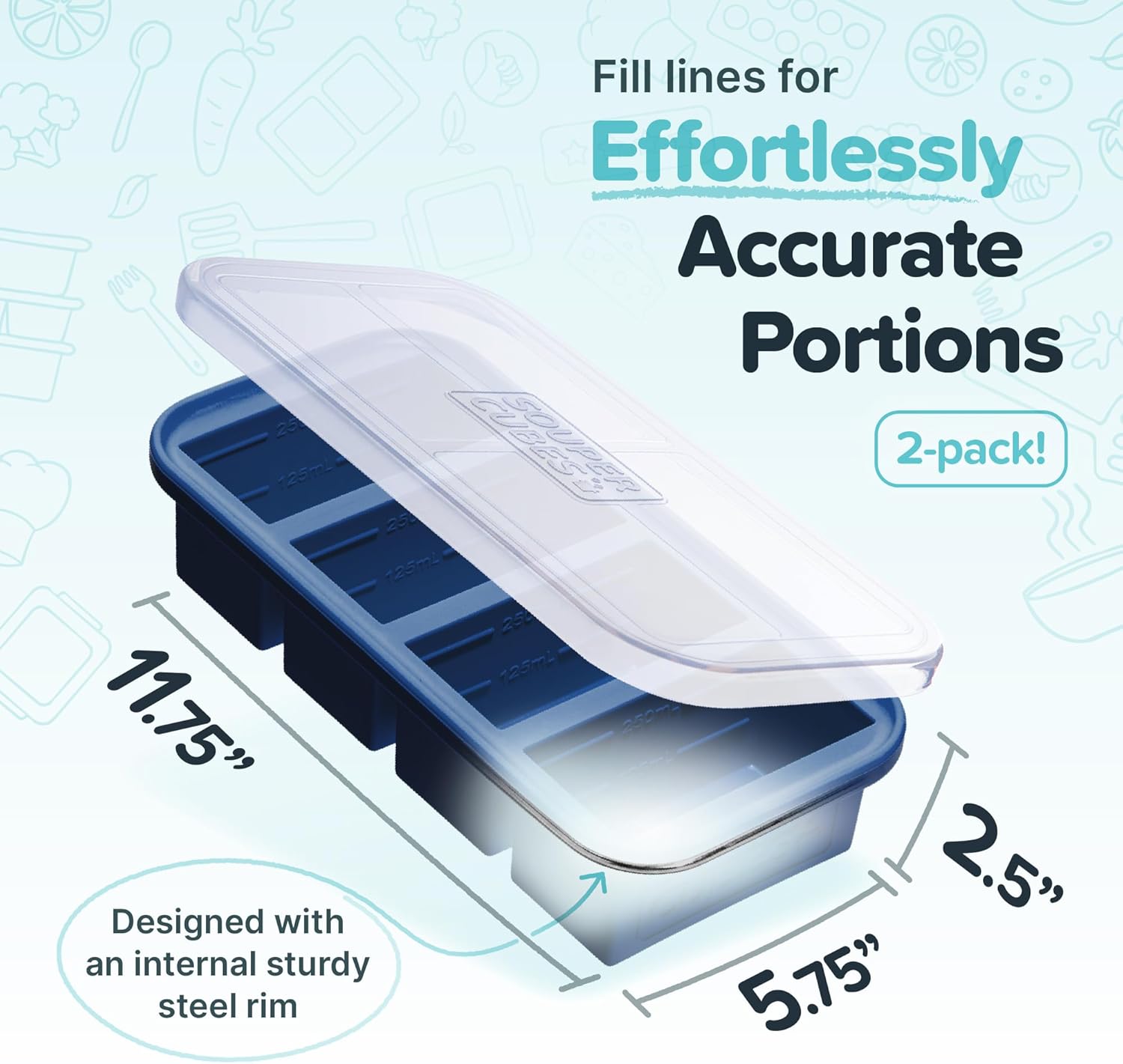 - SAVE TIME AND MONEY BY MEAL PREPPING: Spend less time thinking about what you're going to eat and more time enjoying it. Our silicone soup cubes are designed to make meal prep a breeze. The trays are made from 100% pure platinum food-safe silicone with a steel-reinforced top and a convenient lid.