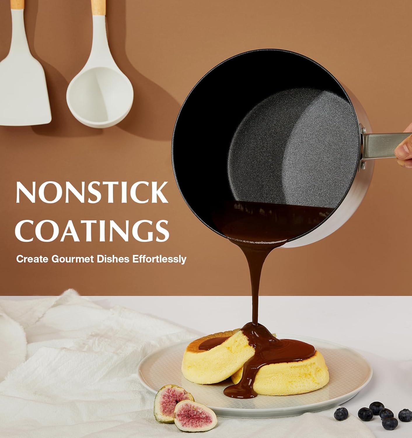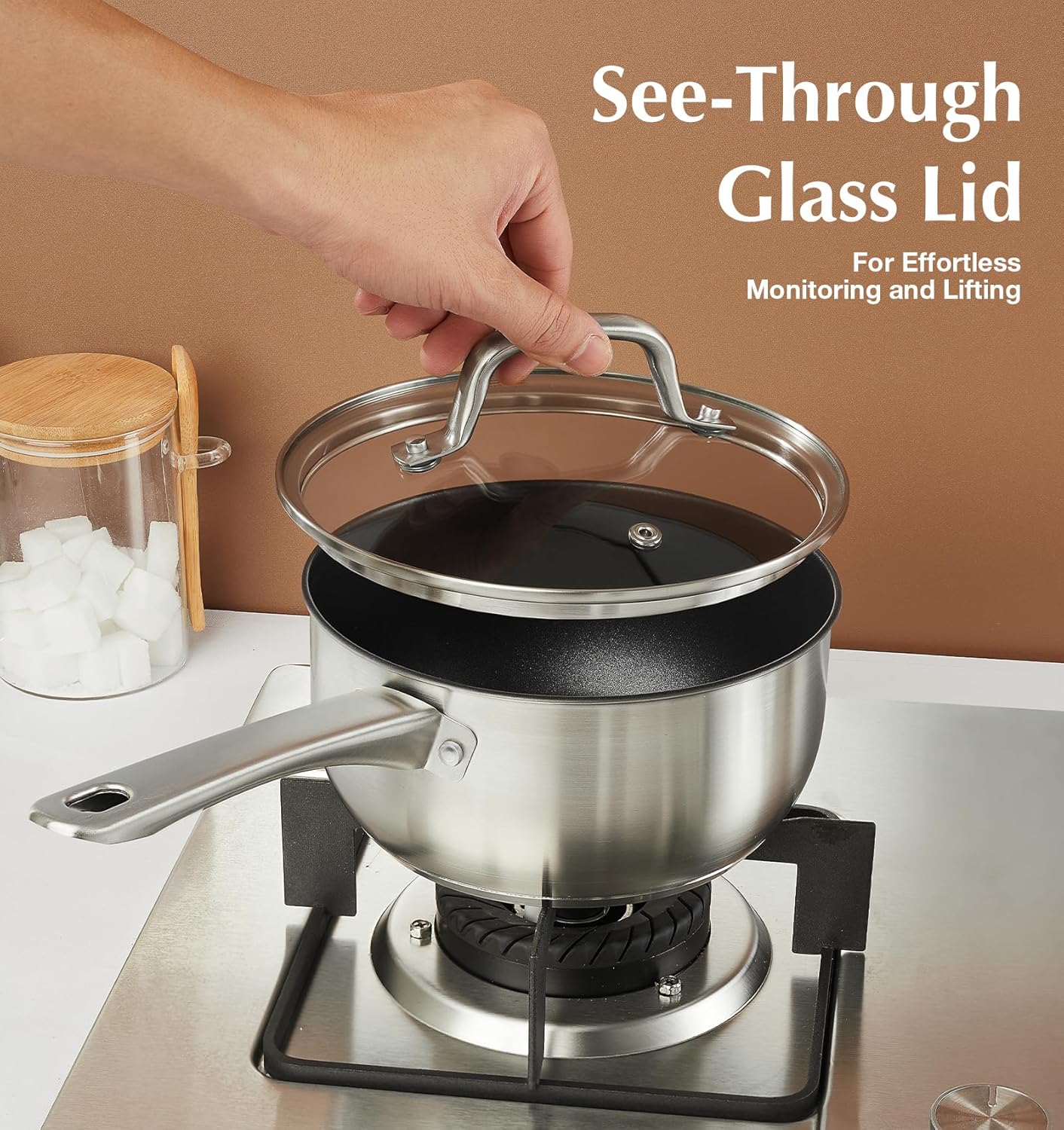- Ultra Nonstick & Healthy Interior: Our stainless steel saucepan boasts a nonstick coating free from APEO and PFOA, ensuring a healthier cooking experience. Effortlessly pour silky sauces like chocolate or sauce with its exceptional nonstick performance. Enjoy the ease of cooking with our 3 quart saucepan.