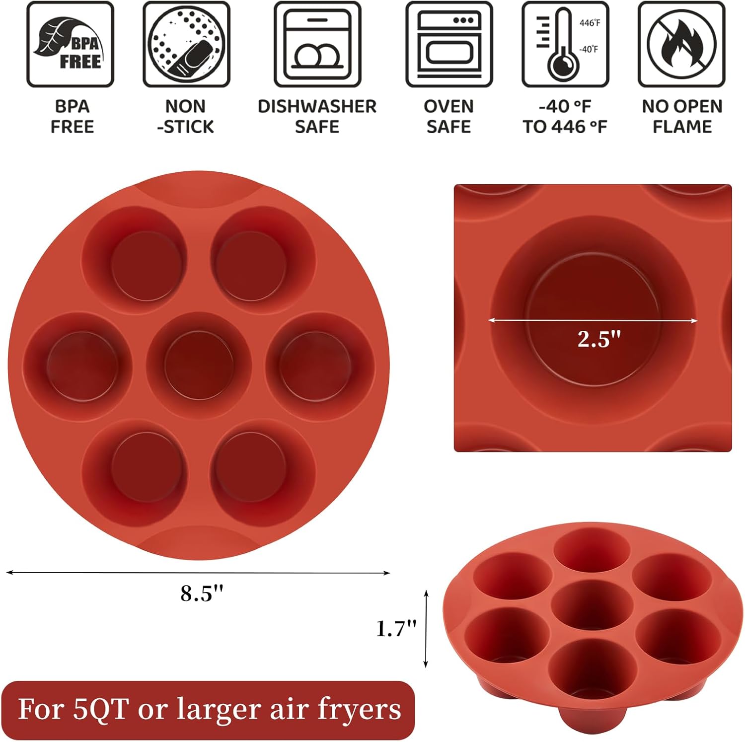 - Safe Material: This air fryer muffin tray is made of food grade silicone, BPA free, safe, odourless and can withstand high temperatures up to 446 °F.