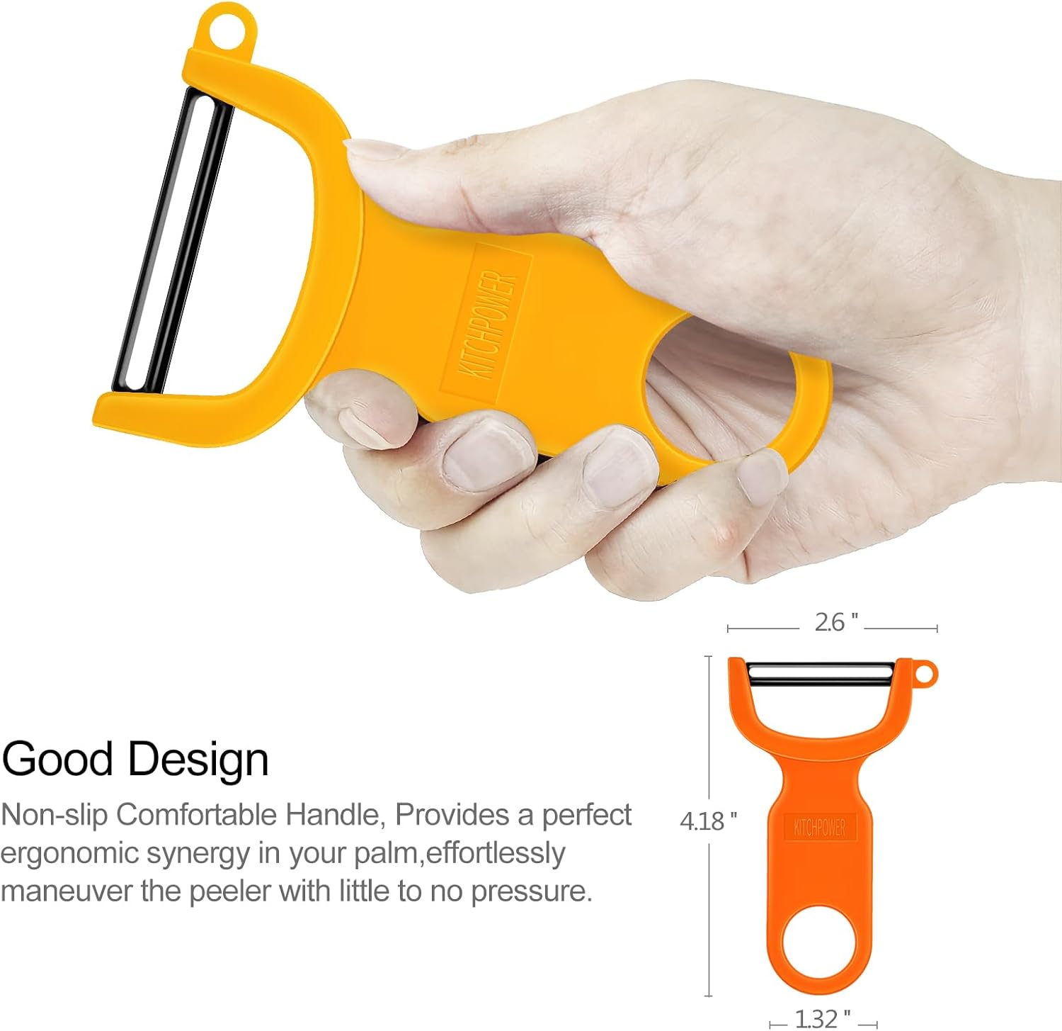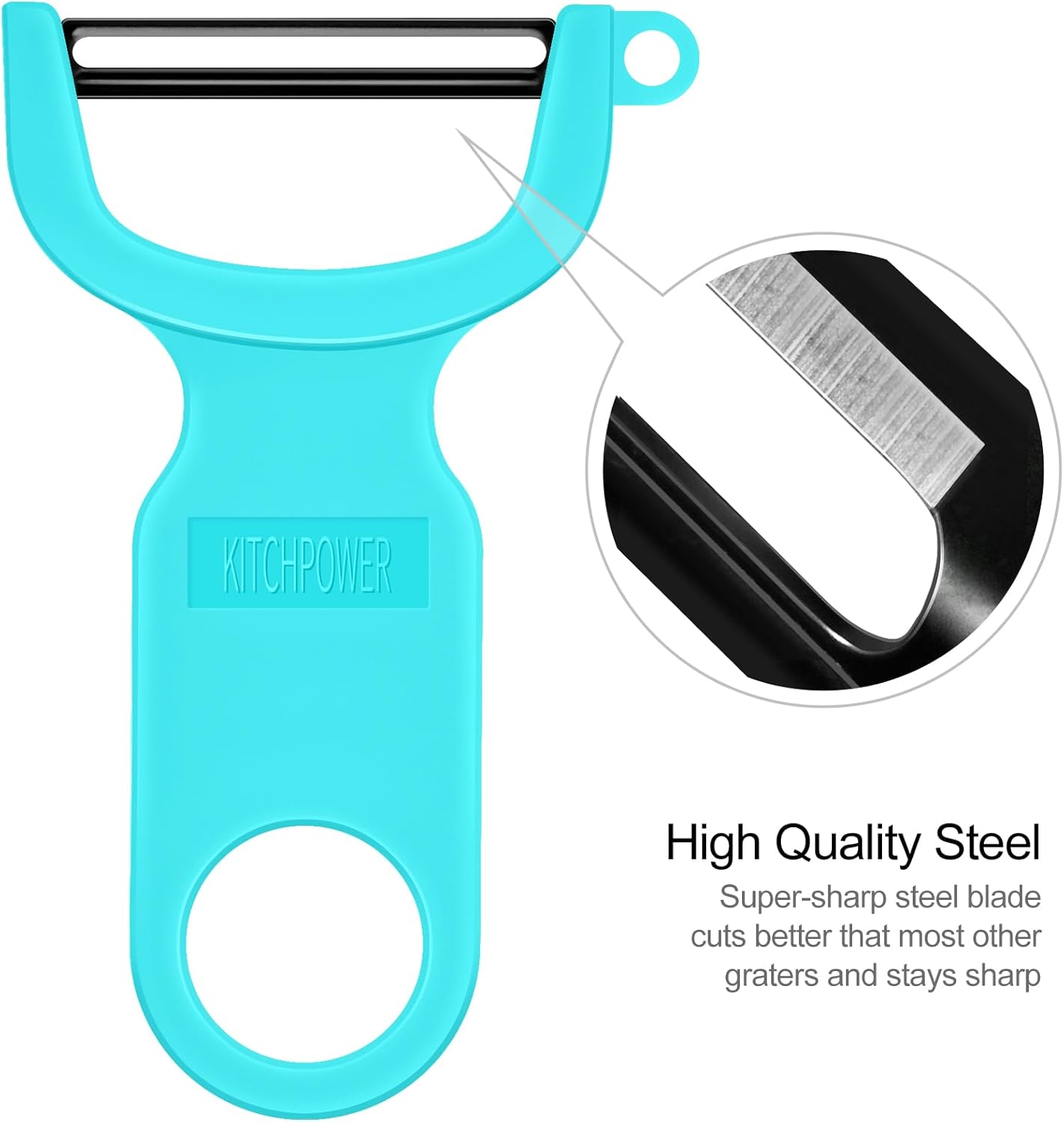 - KITCHPOWER PEELER - Removes just the peel without digging into fruit beneath. Whatever the task, the peeler should handle bumps and curves with ease and without clogging or losing its edge.