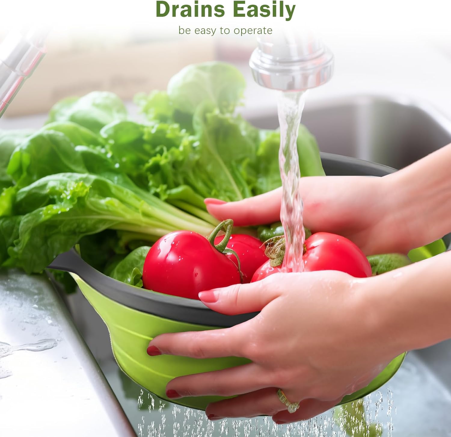 Collapsible Colander Set of 2 Silicone Kitchen Strainer Set, Perfect for Draining Pasta, Vegetable and fruit for Kitchen and Travel Use (green)
