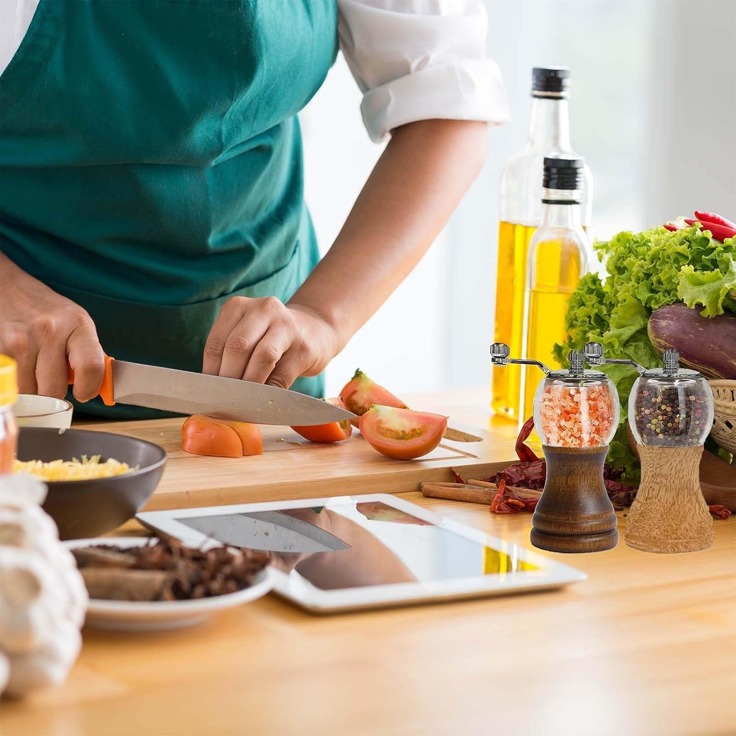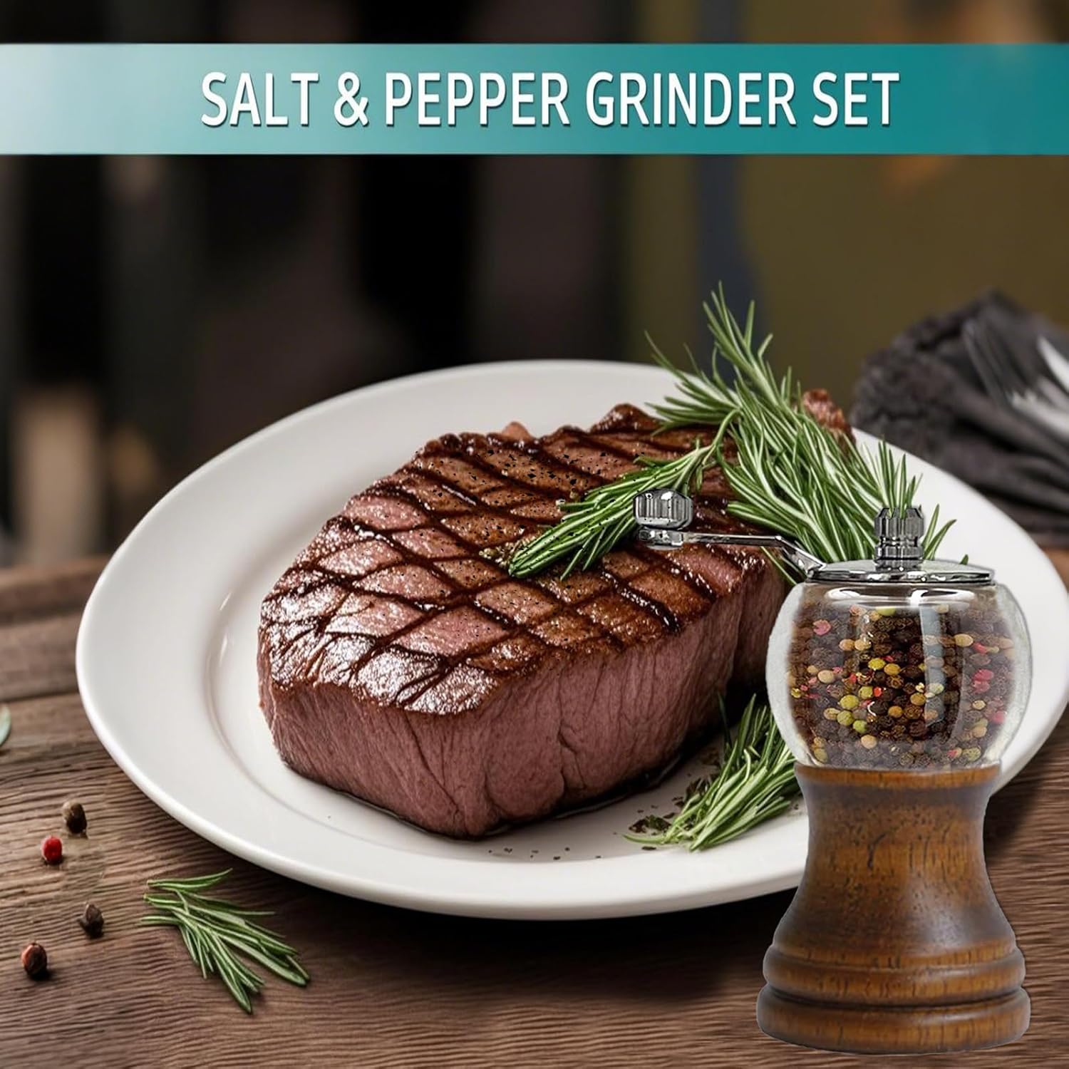 Pepper Mills Pepper Grinder Set, Classical Hand Shake Wooden Pepper Grinder Setrefillable Wood Acrylic grinder, Ceramic Blades & Metal Handle Tools (5in-2pcs-Mixed Color)