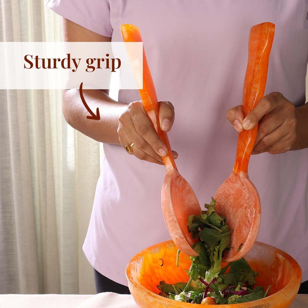 - [MULTIPURPOSE USE] - Our hand-poured resin small serving tongs or salad servers are versatile for tossing and serving salads, fruits, pasta, or vegetables. The serving spoon add a stylish twist to any kitchen. Perfect for parties, kitchen decor and accessories and an excellent gift choice for Christmas, birthdays, anniversaries, or housewarmings.