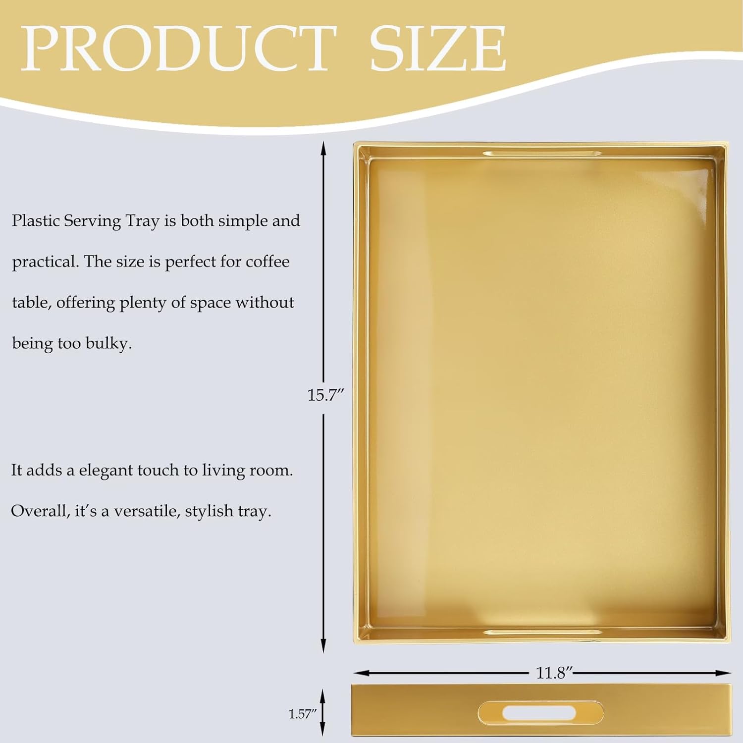 Spsyrine Gold Plastic Serving Tray for Ottoman, Coffee Table, Rectangle Decorative Tray for Entertaining, Outdoor, Living Room, Home Decor