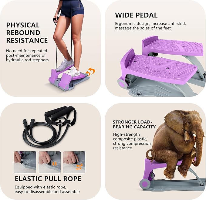 - Full Body Workout:Engage your core, glutes, arms, and shoulders with this compact low-impact cardio training equipment. The included resistance bands ensure every part of your body gets a workout.