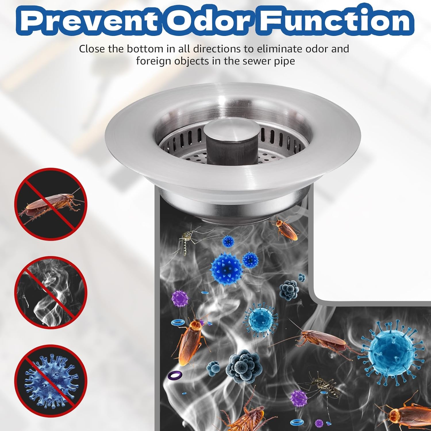 - ❅Anti clogging design: Newly upgraded sink drain stopper has an appropriate basket hole design, easily capture food waste. The kitchen sink filter is designed with 3 large drainage holes to ensure quick drainage without clogging. Double insurance ensures no blockage.