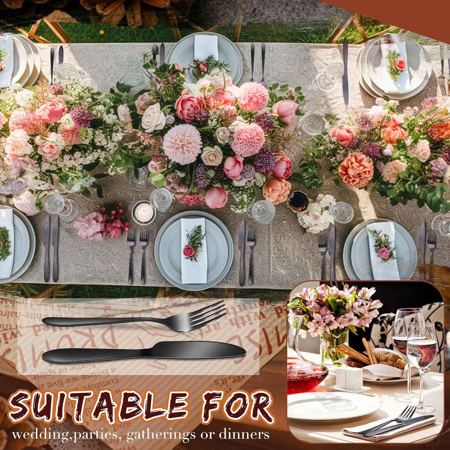 - Quality Material: the forks and knives set is crafted with quality stainless steel; The durability of this material ensures that the utensils will not warp, discolor, or bend easily, which adds longevity, at the same time, it is also dishwasher safe, bringing you convenience