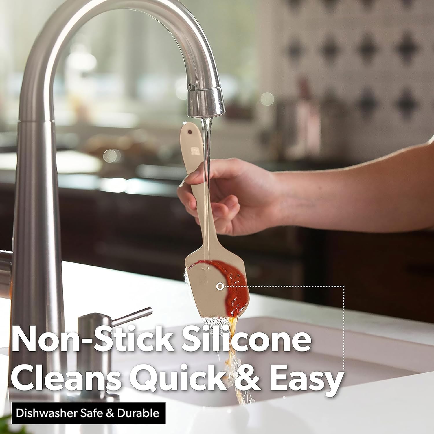 - THE PERFECT COMPLEMENT TO NON-STICK COOKWARE - Whether cooking the perfect scrambled eggs or sautéing a medley of summer vegetables, you can rest assured that our non-stick pro-grade silicone will not scratch your expensive cookware.