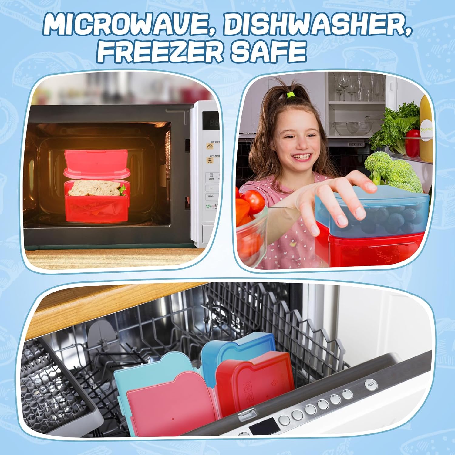 - Perfect Size for Sandwich: Our reusable meal prep containers are specially made for sandwiches, unlike square boxes, ours will protect the heads on both sides of the sandwich, and will not be unable to hold the sandwich. Note: Suitable for 3+ Years Kids