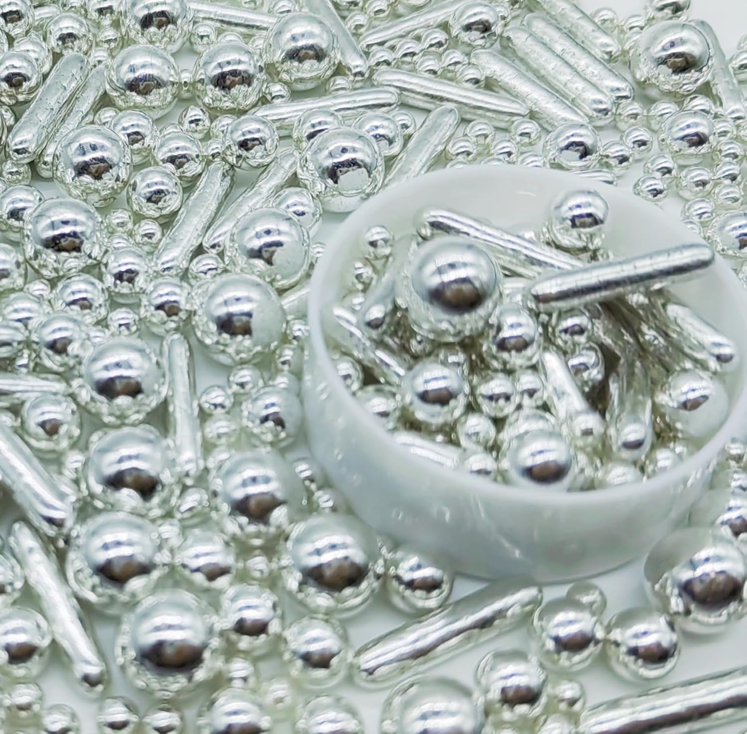 Silver Sprinkles Candy Mix Size Edible Pearls Cake Decorations Cupcake Toppers Cookie Decorating Perfect for Wedding Party Valentine Halloween Christmas Supplies 4.58OZ