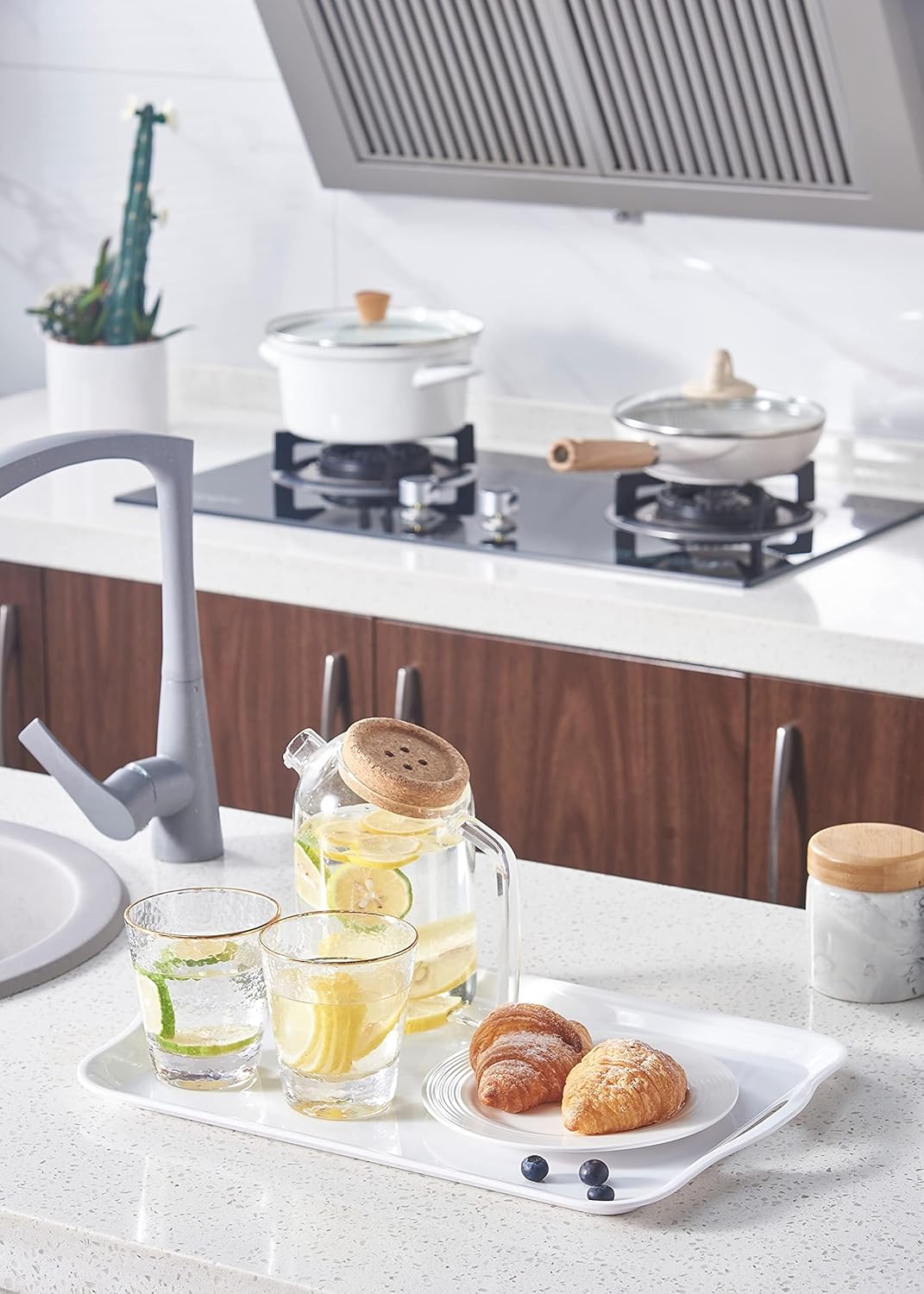 Blue Boat 16.5" x 11.5" Serving Trays Set of 4 White, Dinner Tray, Light Weight Easy to Clean Sturdy Stackable Melamine Serving Tray with Handle, Fruit, Snacks, and Desserts Trays