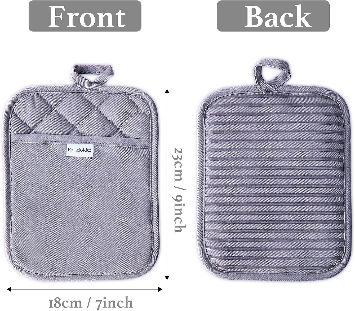 Kitchen Everyday Basic Pot Holder Heat Resistant Coaster Soft Silicone Water Resistant Pot Holder Set Oven Mitts with Pocket, 2 Piece Set, 7"x9" Grey