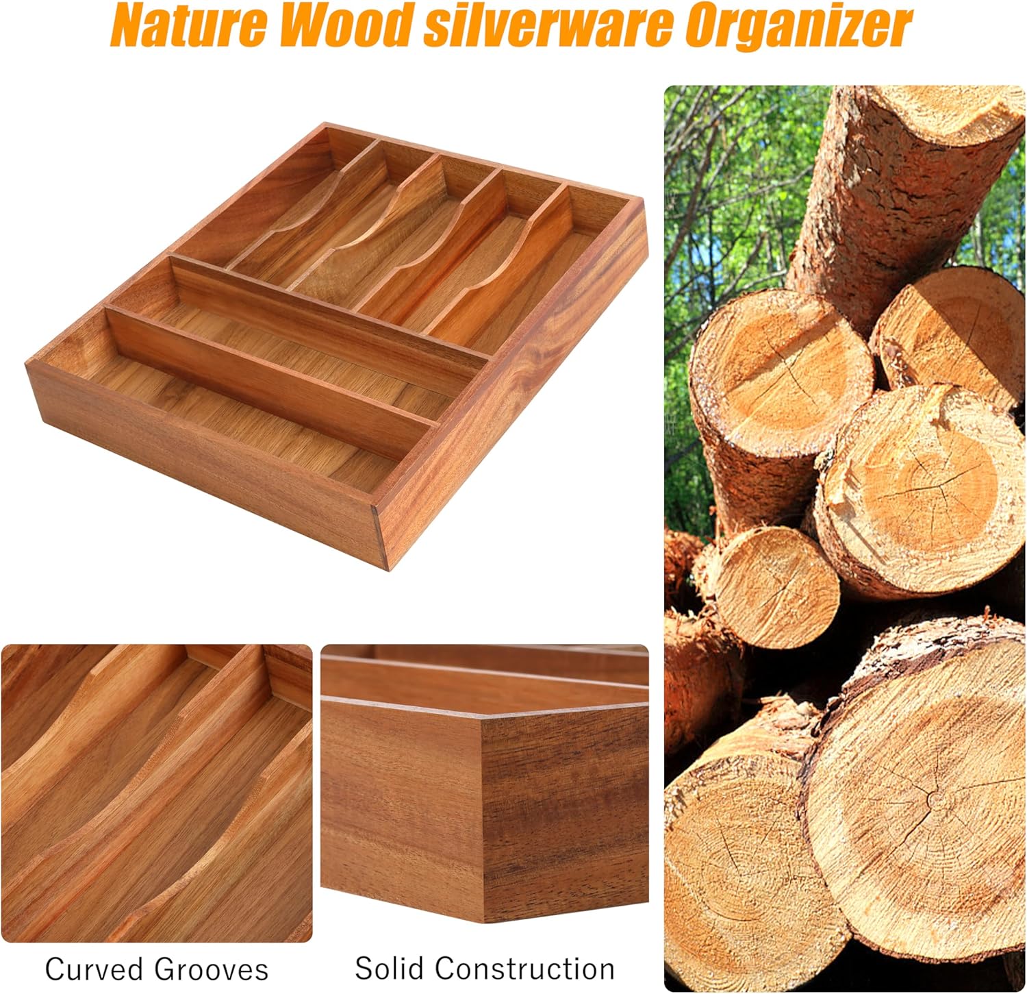 - ✅【Perfect premium bamboo】Our utensil silverware drawer organizer flatware cutlery tray is crafted from natural bamboo that has been grown for over 4 years. Each silverware drawer organizer made of bamboo is meticulously handcrafted by seasoned artisans to ensure a smooth, splinter-free surface. You can confidently allow your family or children to use our silverware drawer organizer. Unlike plastic and metal drawer organizers, our utensil holder is water-resistant and odor-resistant, making it perfect for long-term use.