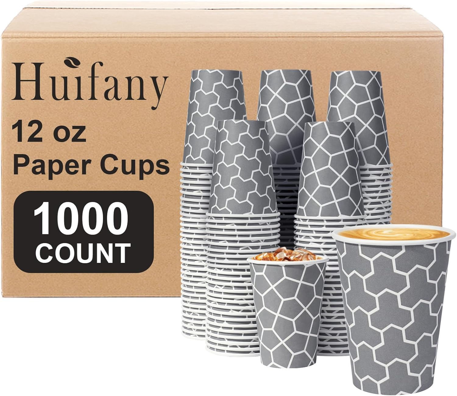 Coffee Cups 12 oz Paper Cups [1000 Count], Disposable Coffee Cups, 12 oz Hot/Cold Cups, Thickened Insulated Cup for Cafes, Office, Party, Home, Travel, and Events
