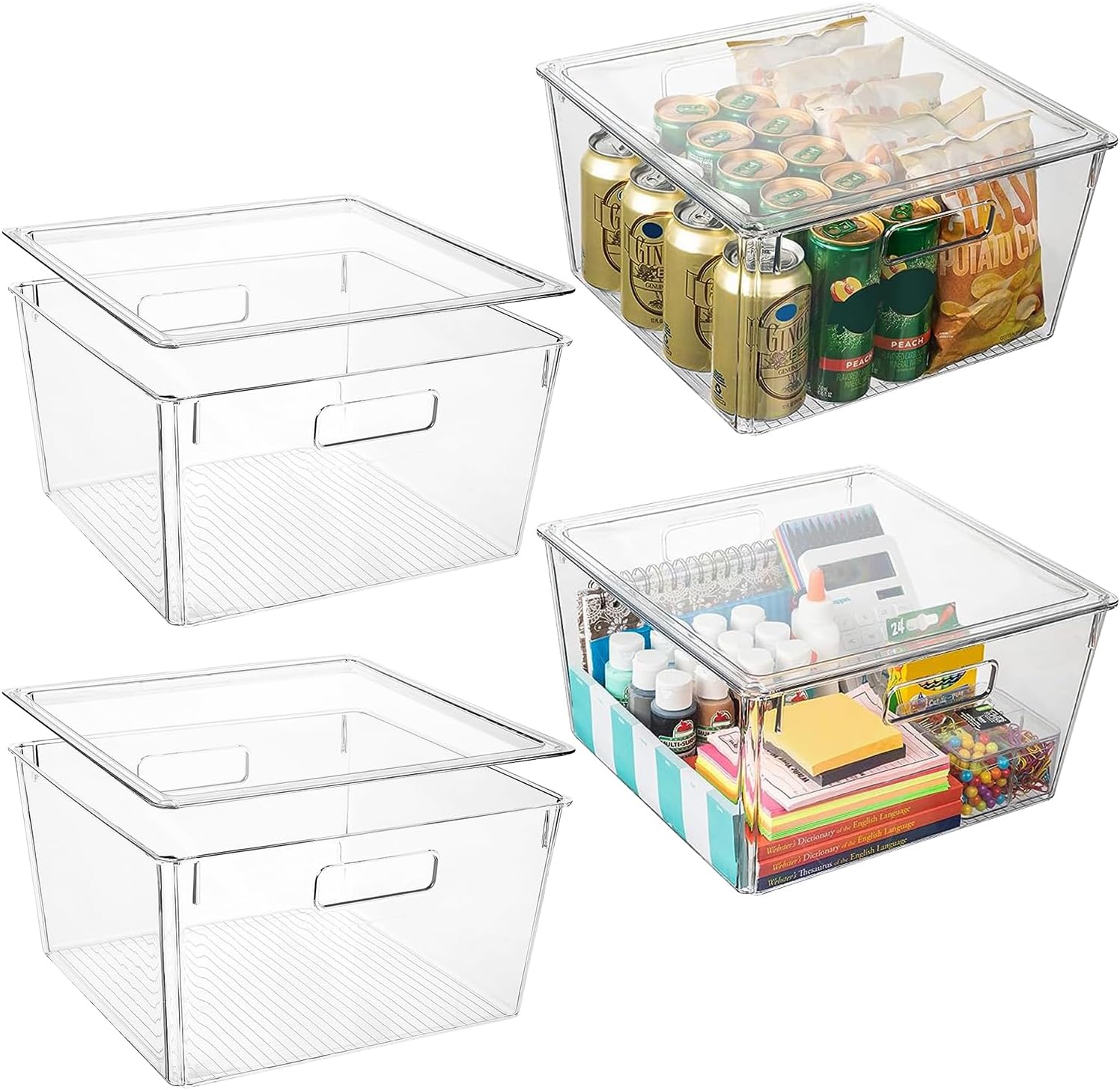- EXTRA LARGE CLEAR STORAGE BINS: This plastic containers with lids is highly resistant to cracking and chipping, and can handle heavy use. each measure 12.6 x 12.6 x 7 inches