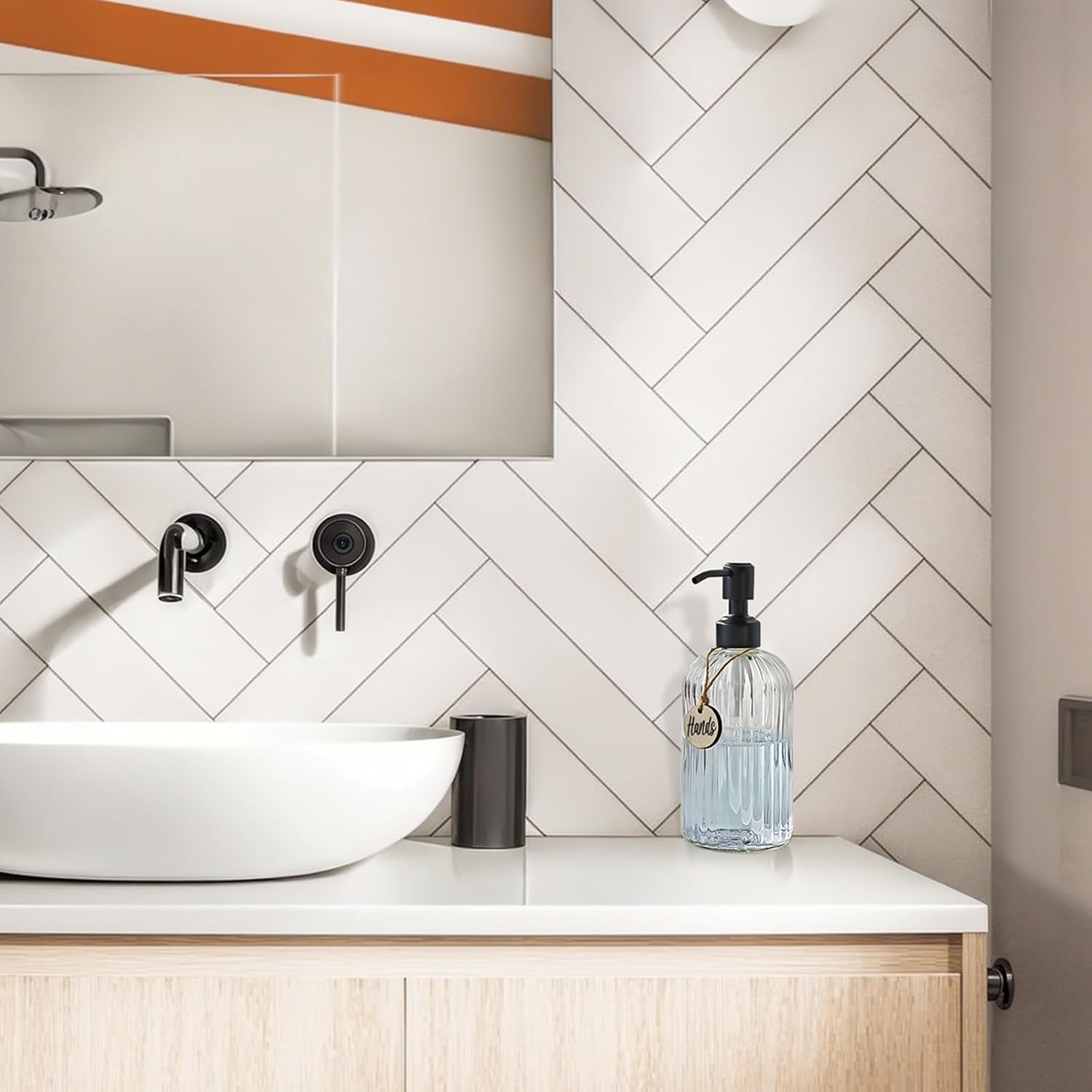 JASAI 18Oz Simple Glass Soap Dispenser with Black Rust Proof Pump,Refillable Kitchen soap Dispenser with Vertical Stripe, Bathroom Soap Dispenser for Dispense Hand soap, Dish Soap, Lotion.